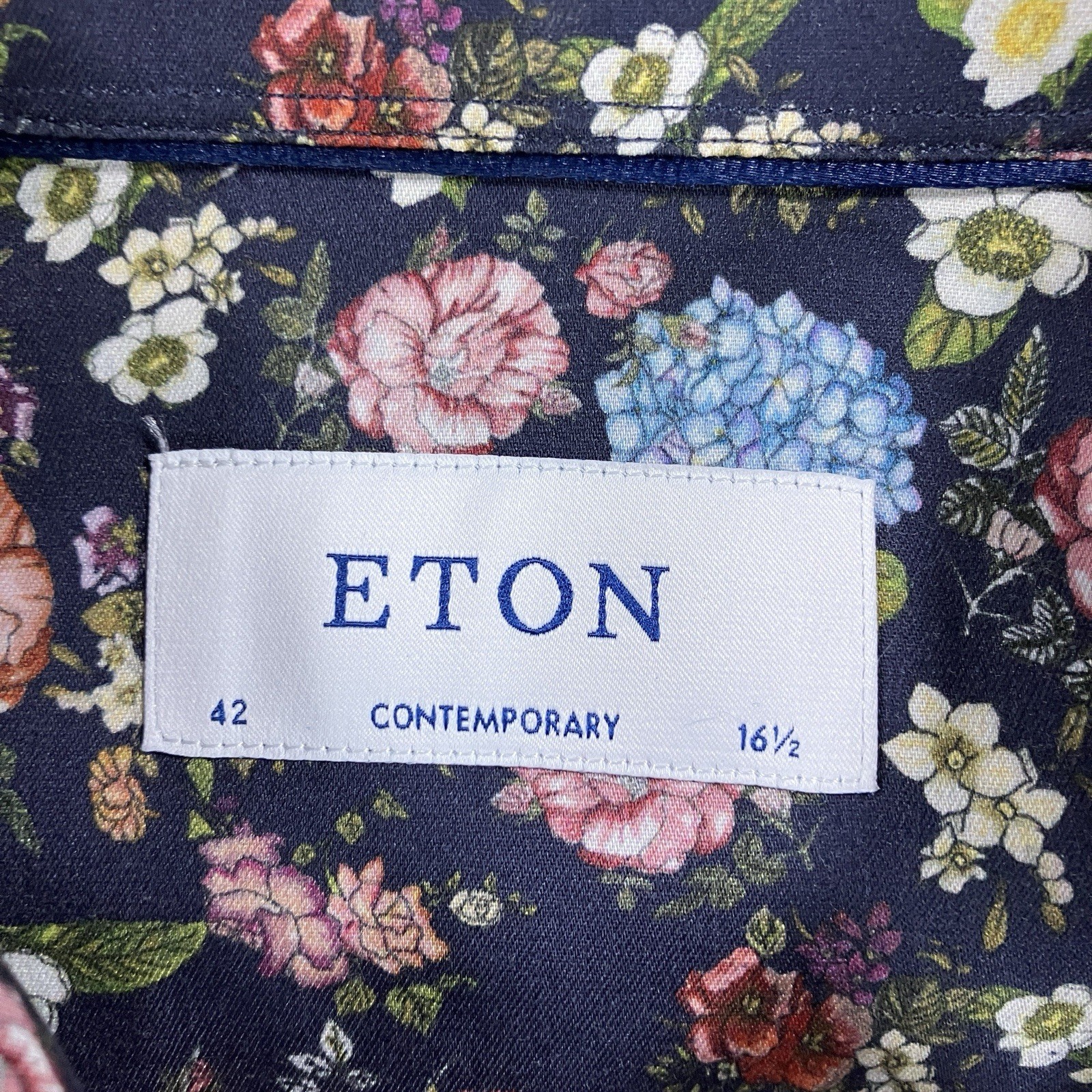 Eton Shirt Mens 16.5 - 42 Blue Floral Long Sleeve Classic Button Up Dress Shirt