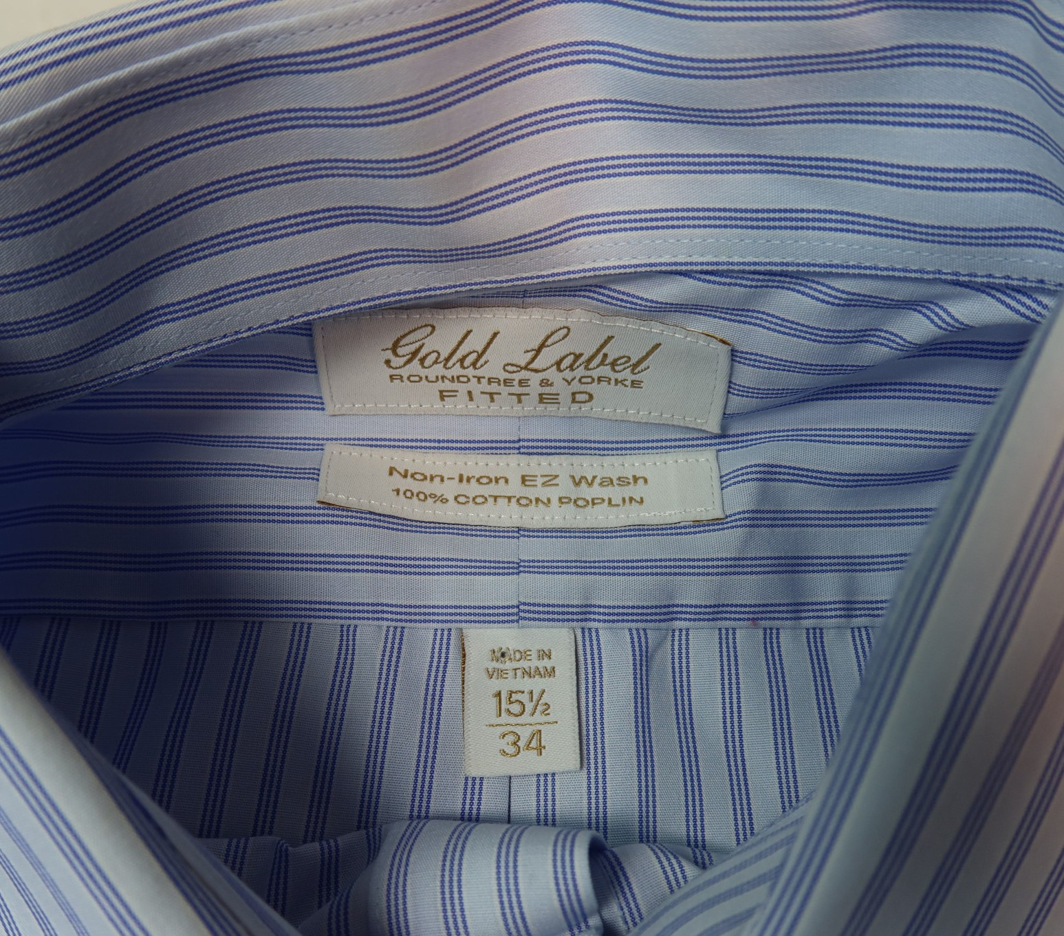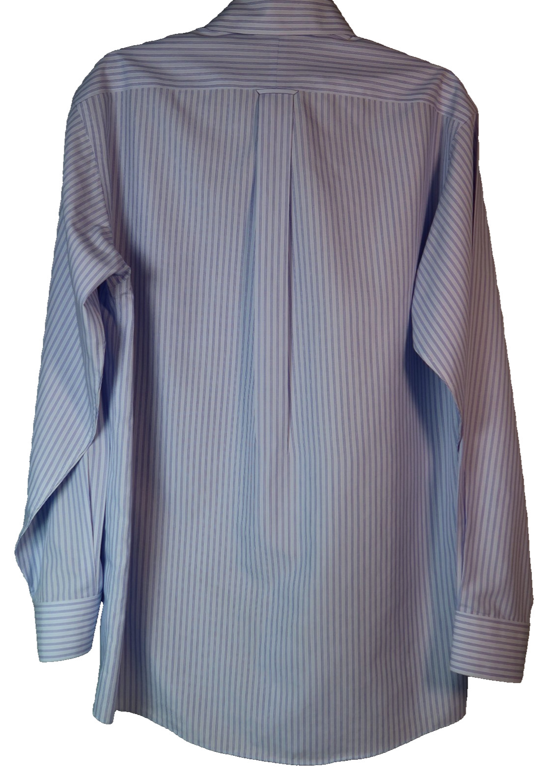 Roundtree Yorke Gold Label Mens Shirt Size 15.5x34 Blue Stripe Fitted Non-Iron