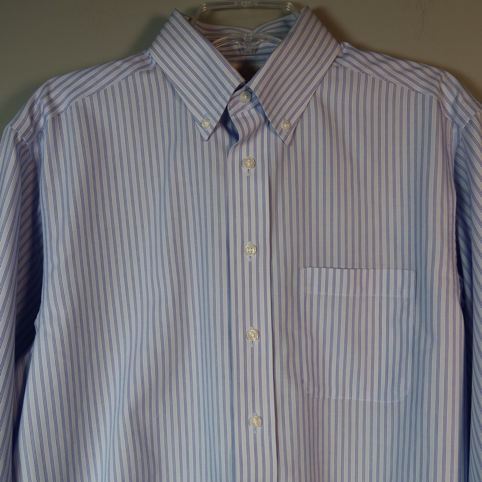 как выглядит Roundtree Yorke Gold Label Mens Shirt Size 15.5x34 Blue Stripe Fitted Non-Iron фото