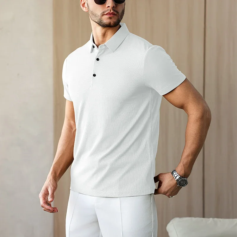 Men's Breathable Solid Color Polo Shirt Summer Casual Business Top Tee Gift