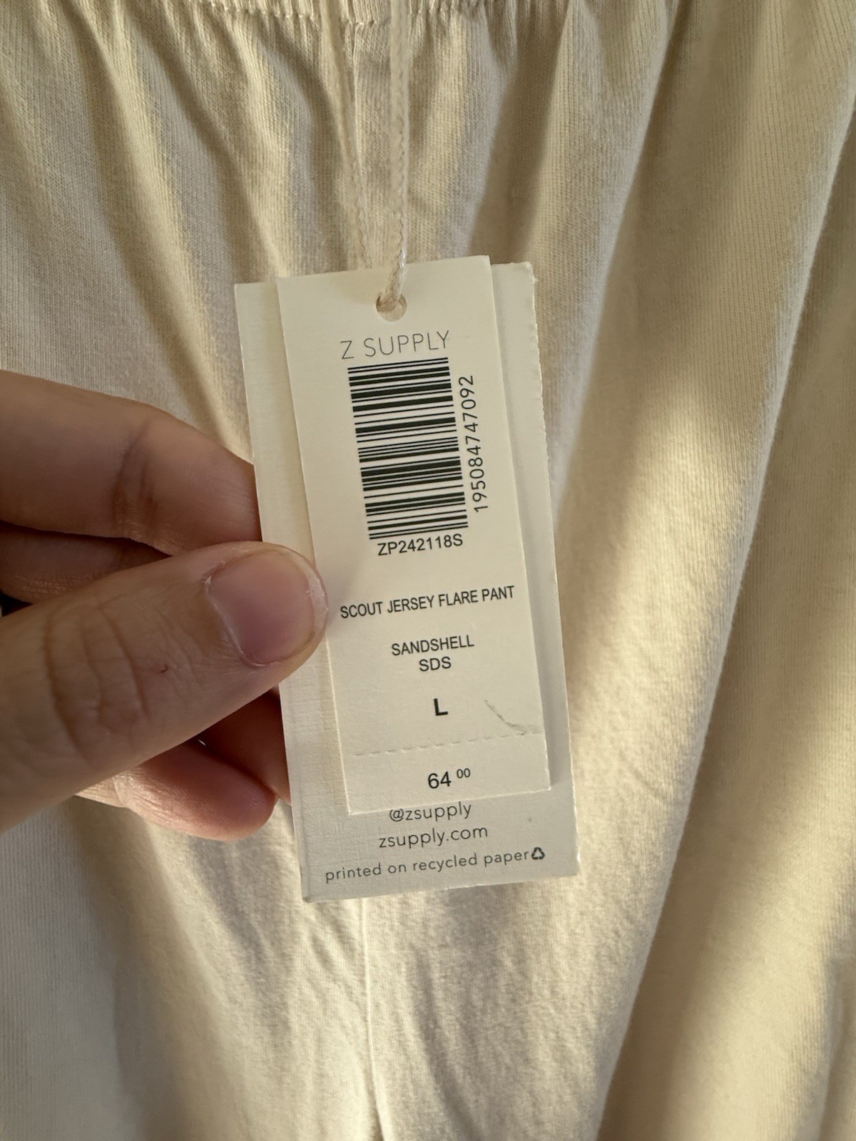 Z SUPPLY Scout Jersey Flare Pant Sandshell 100 cotton L NWT beach casual spring