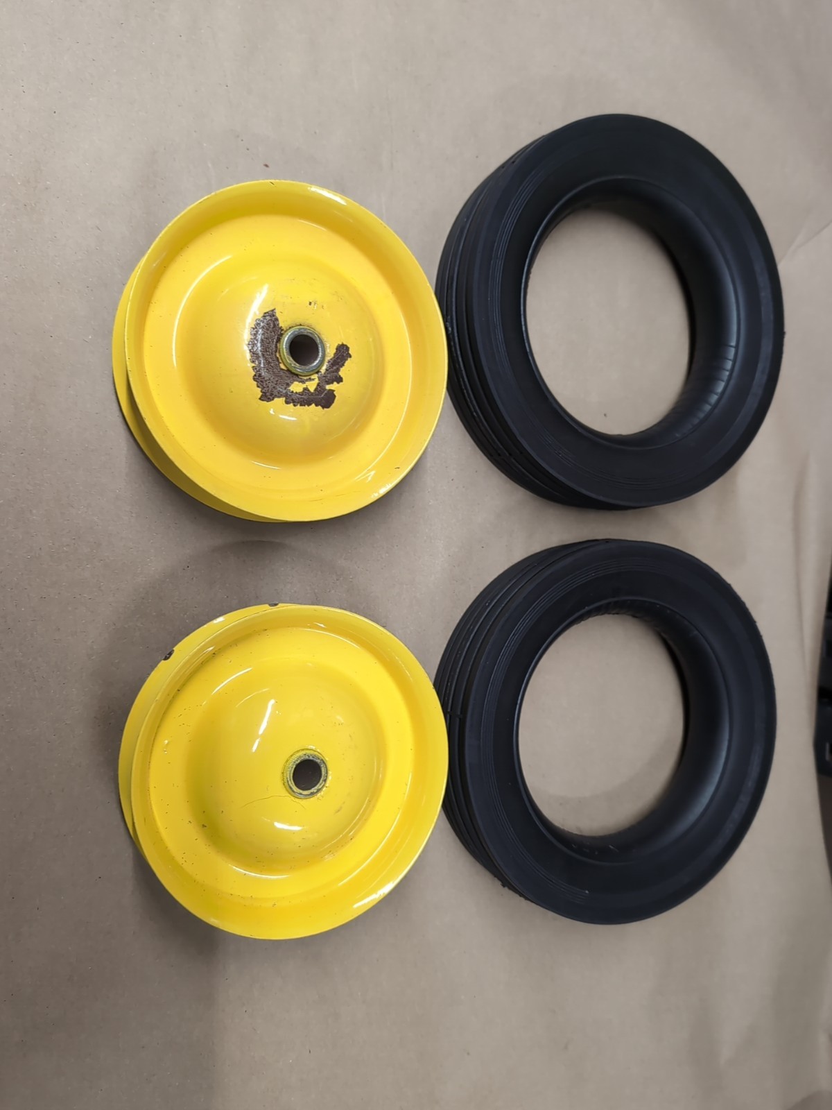 как выглядит Ertl Pedal Tractor Parts Front Wheel Set For a 7 x 1.5" John Deere фото