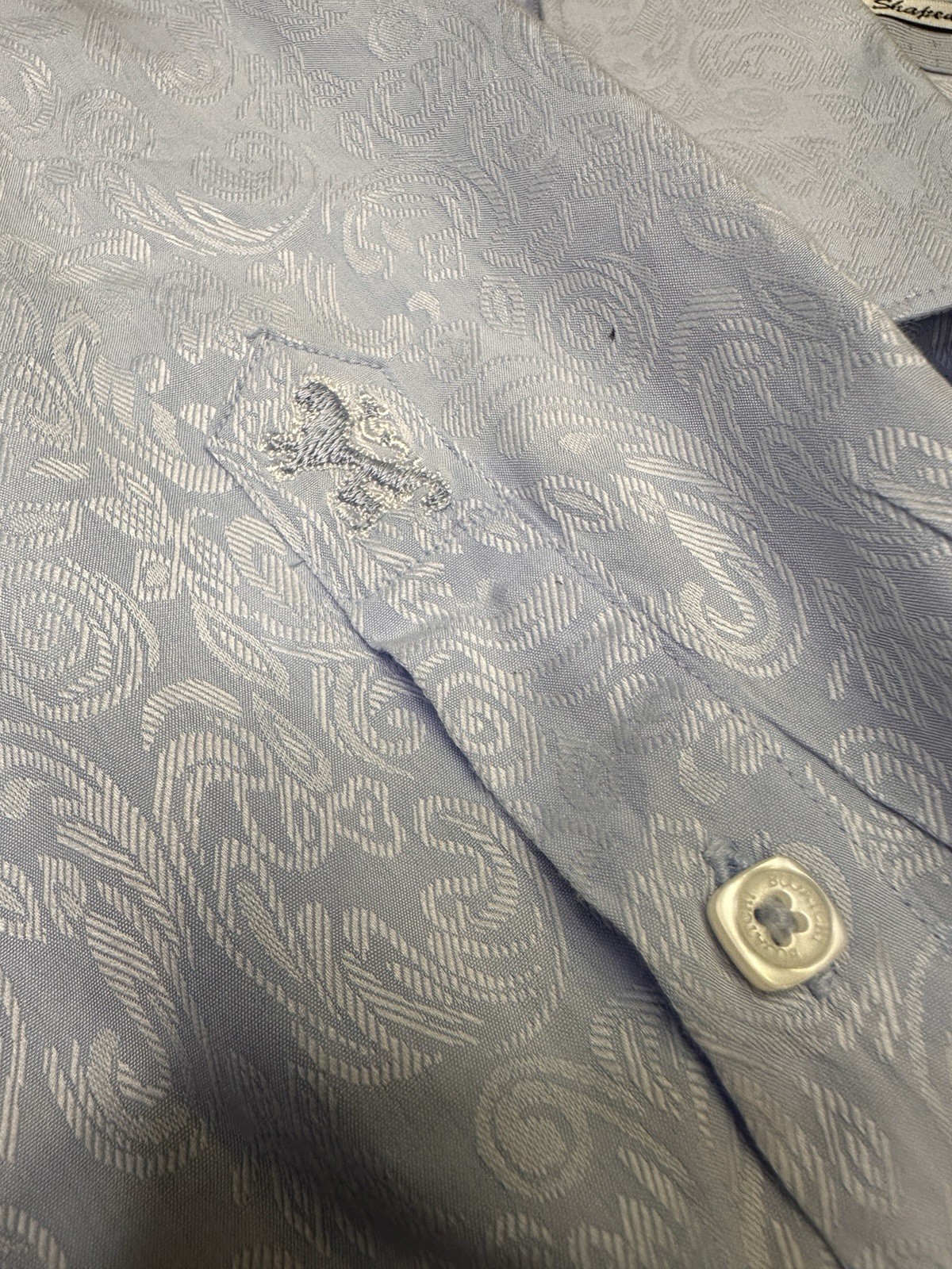 как выглядит Bugatchi Men s Shaped Fit Button-Down Shirt Light Blue Paisley Medium 100 Cotton фото