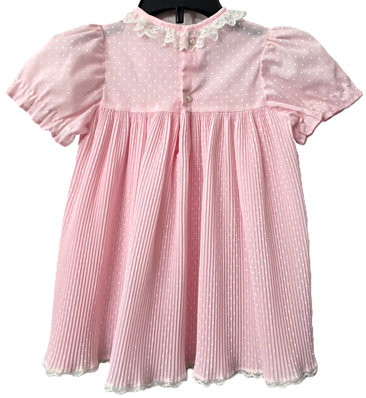 Vintage Easter Swiss Dot Dress 3T Lace Micro Pleats Bow Rose Pink 80s Princess
