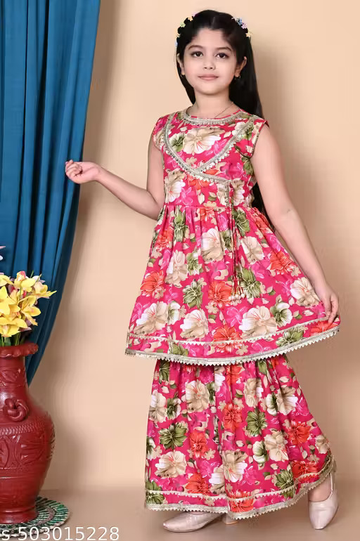 Tradition Cotton Printed kurti set For girls / Sharara Palazzo Set