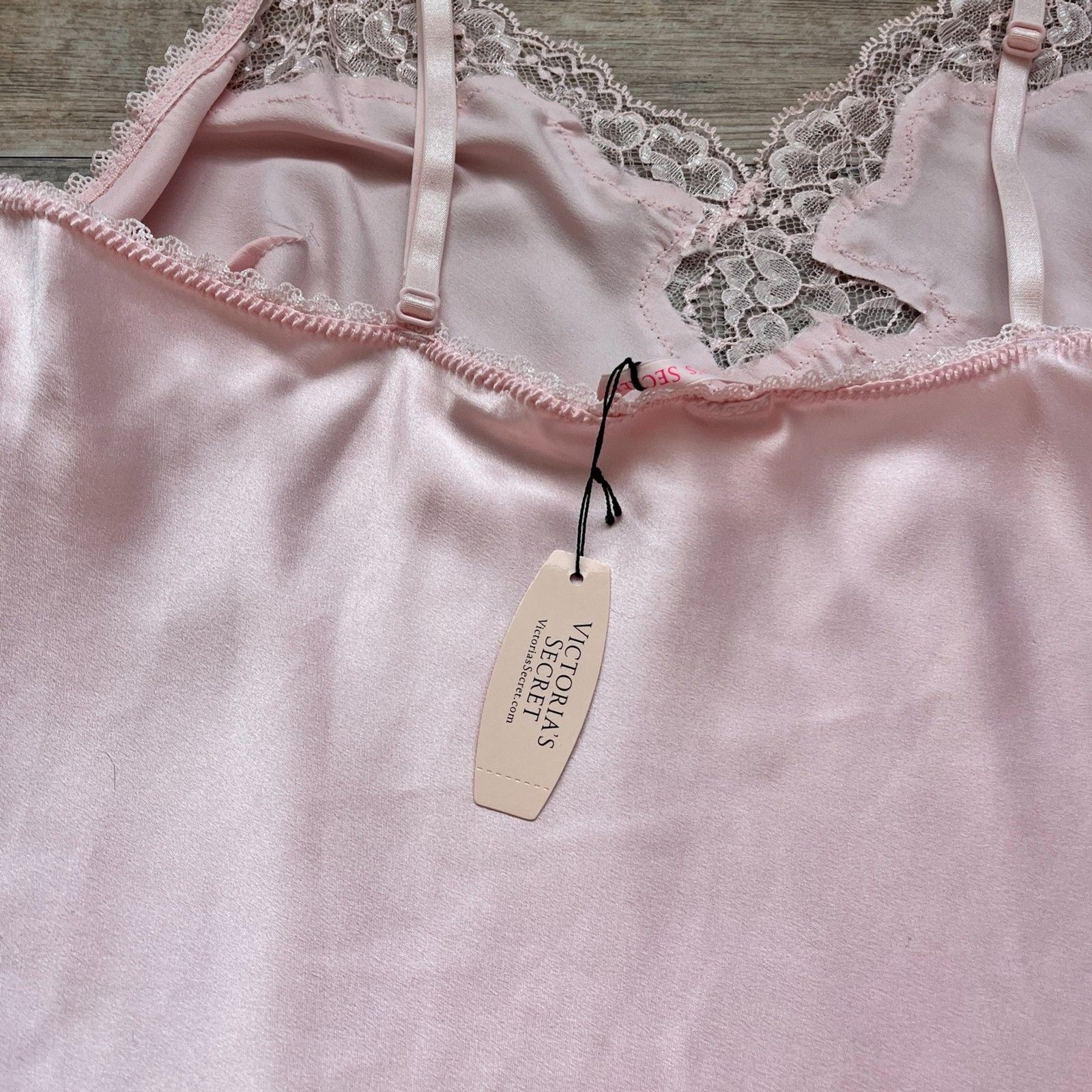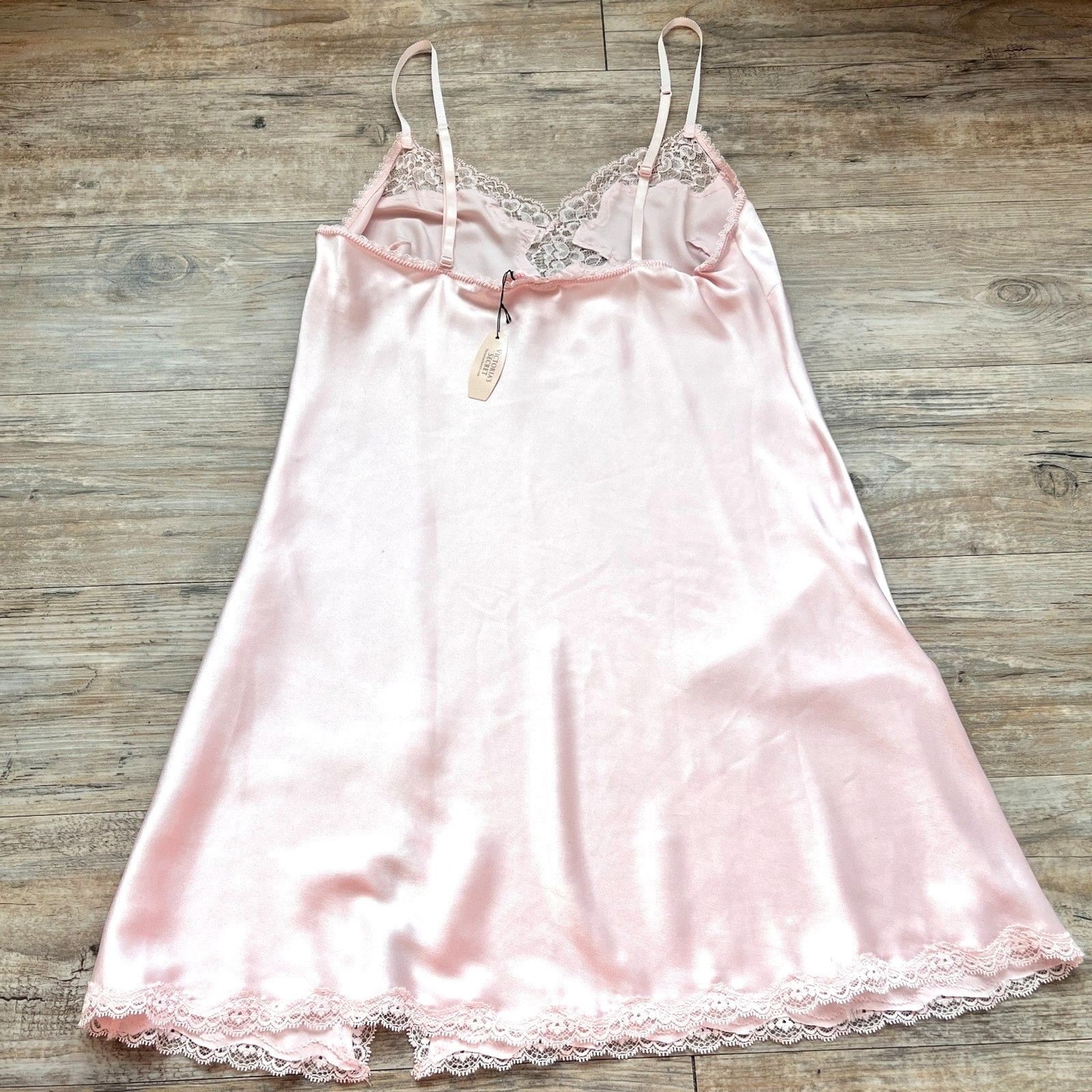 как выглядит Victoria s Secret Pink Satin Lace Slip Dress NWT Medium Vintage Y2K Vintage Cute фото