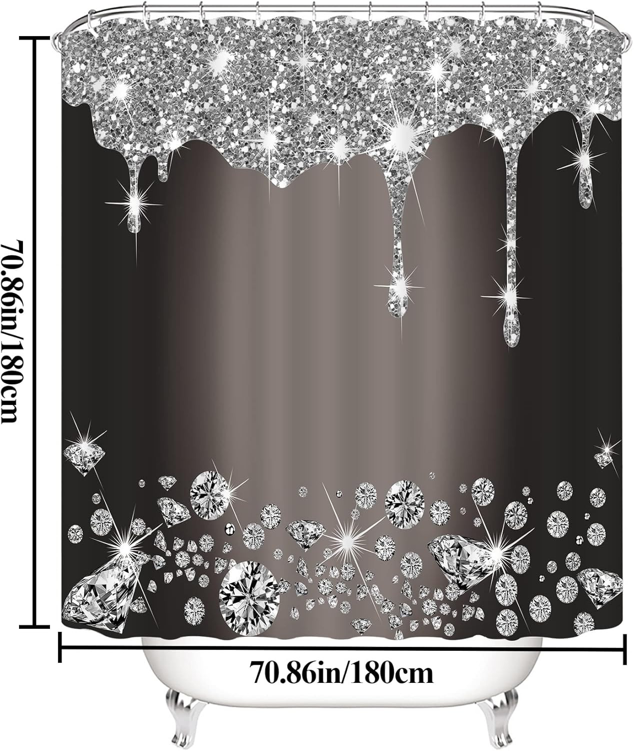 4 Pcs Glitter Diamond Shower Curtain Sets, Black Silver Shiny Drips Bath Decor