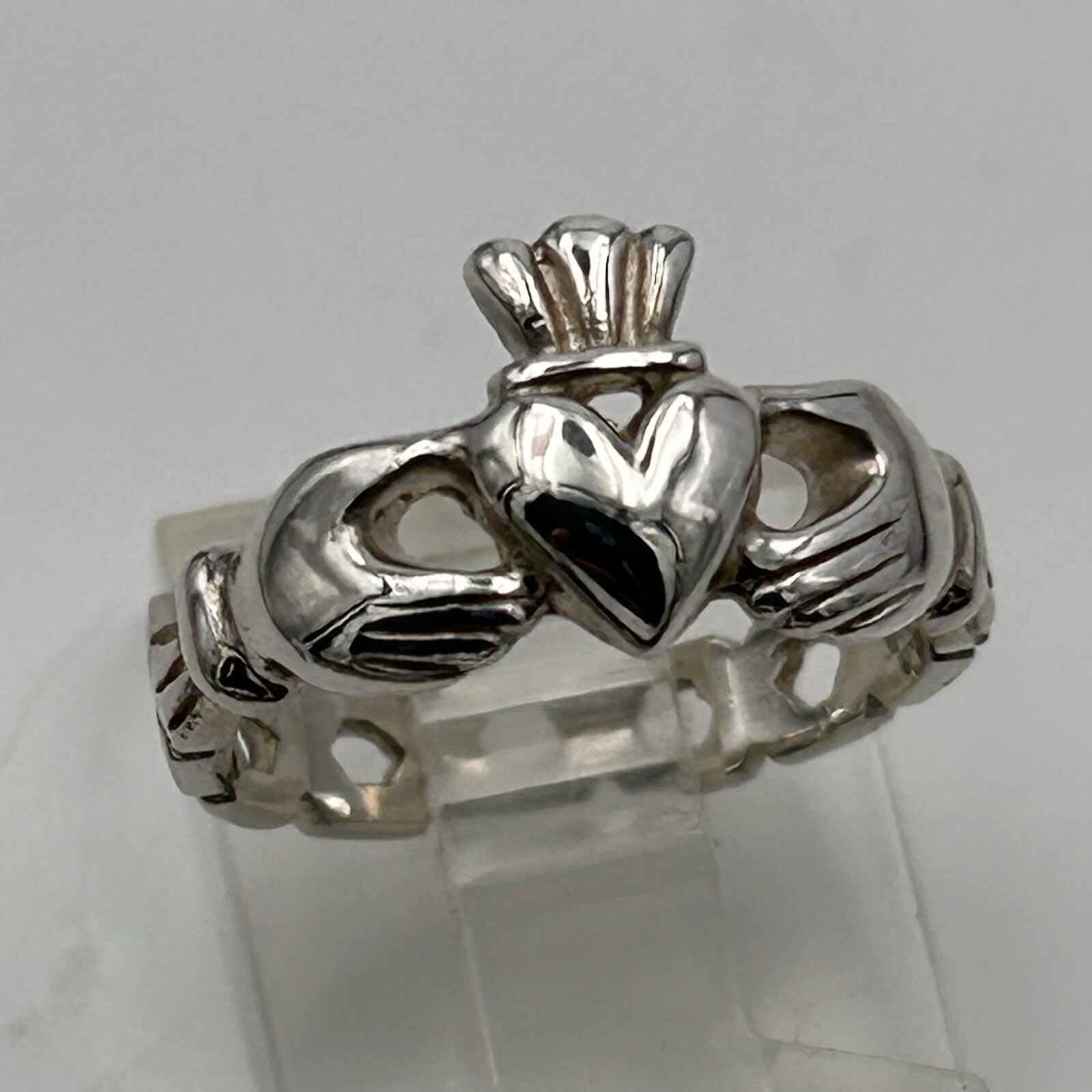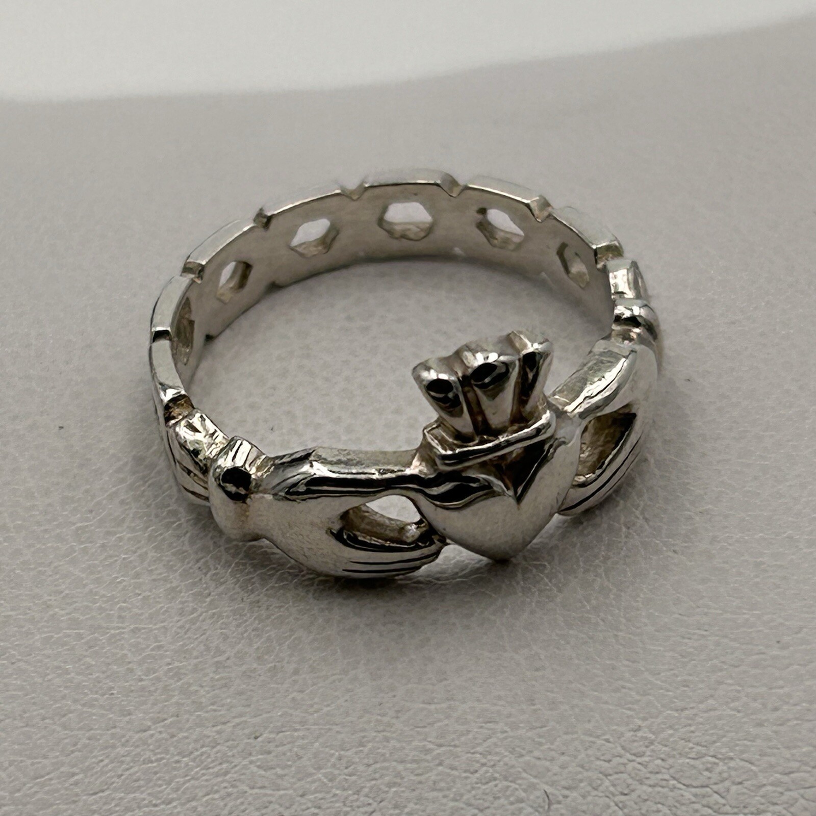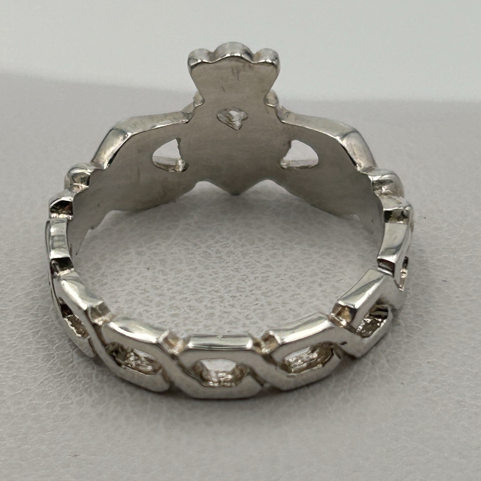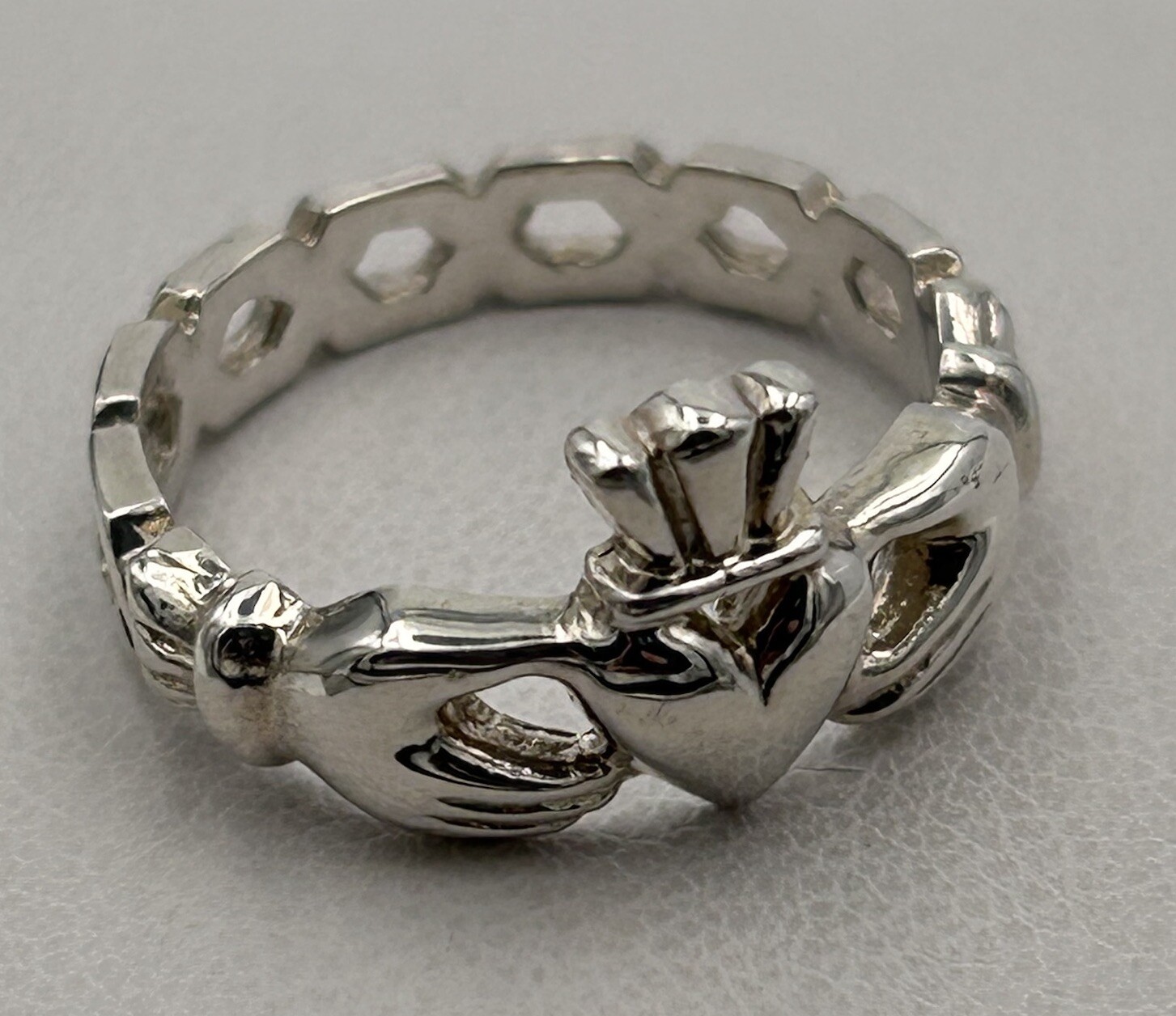925 Sterling Silver Celtic Irish Claddagh Ring Honeycomb Band Love Sz 5.5