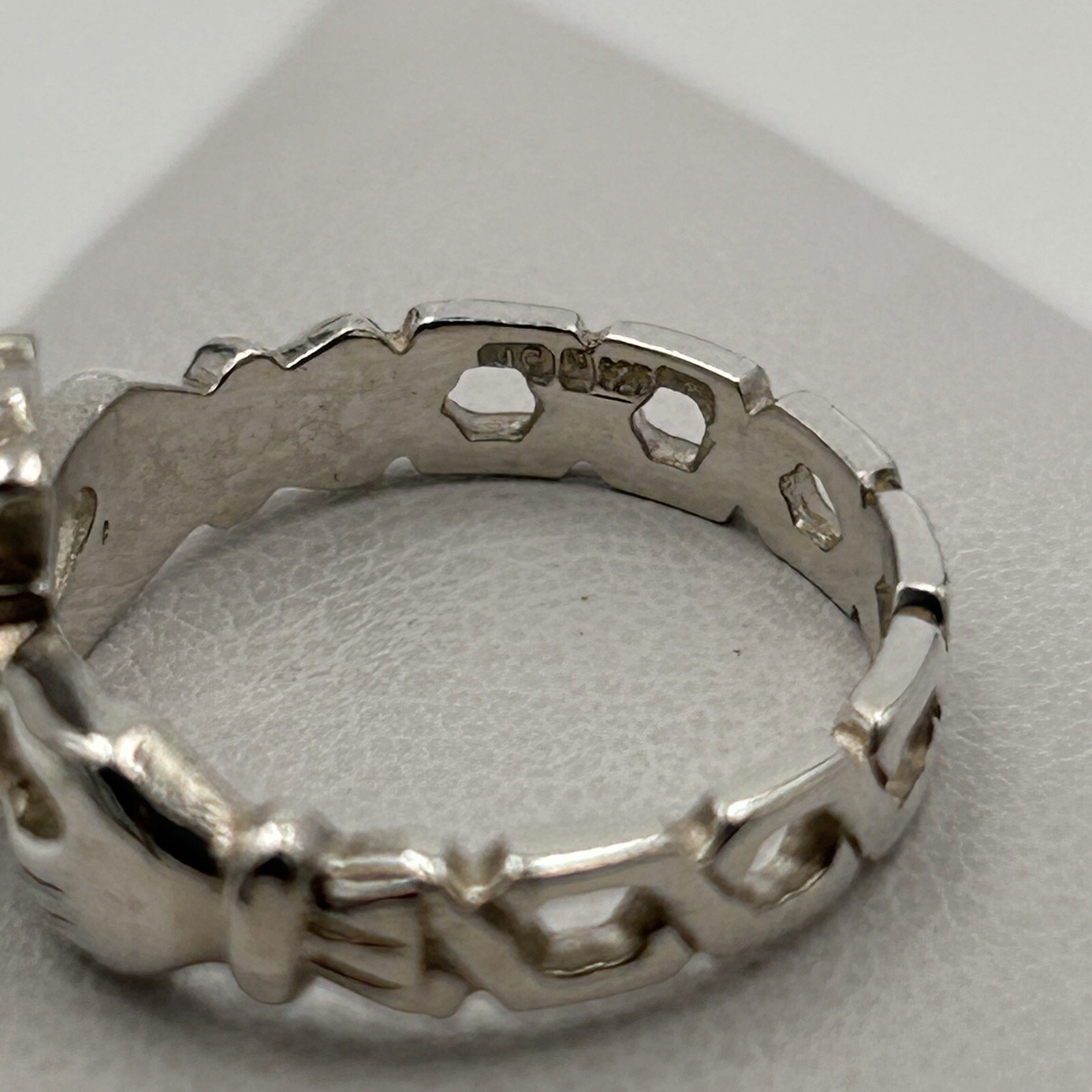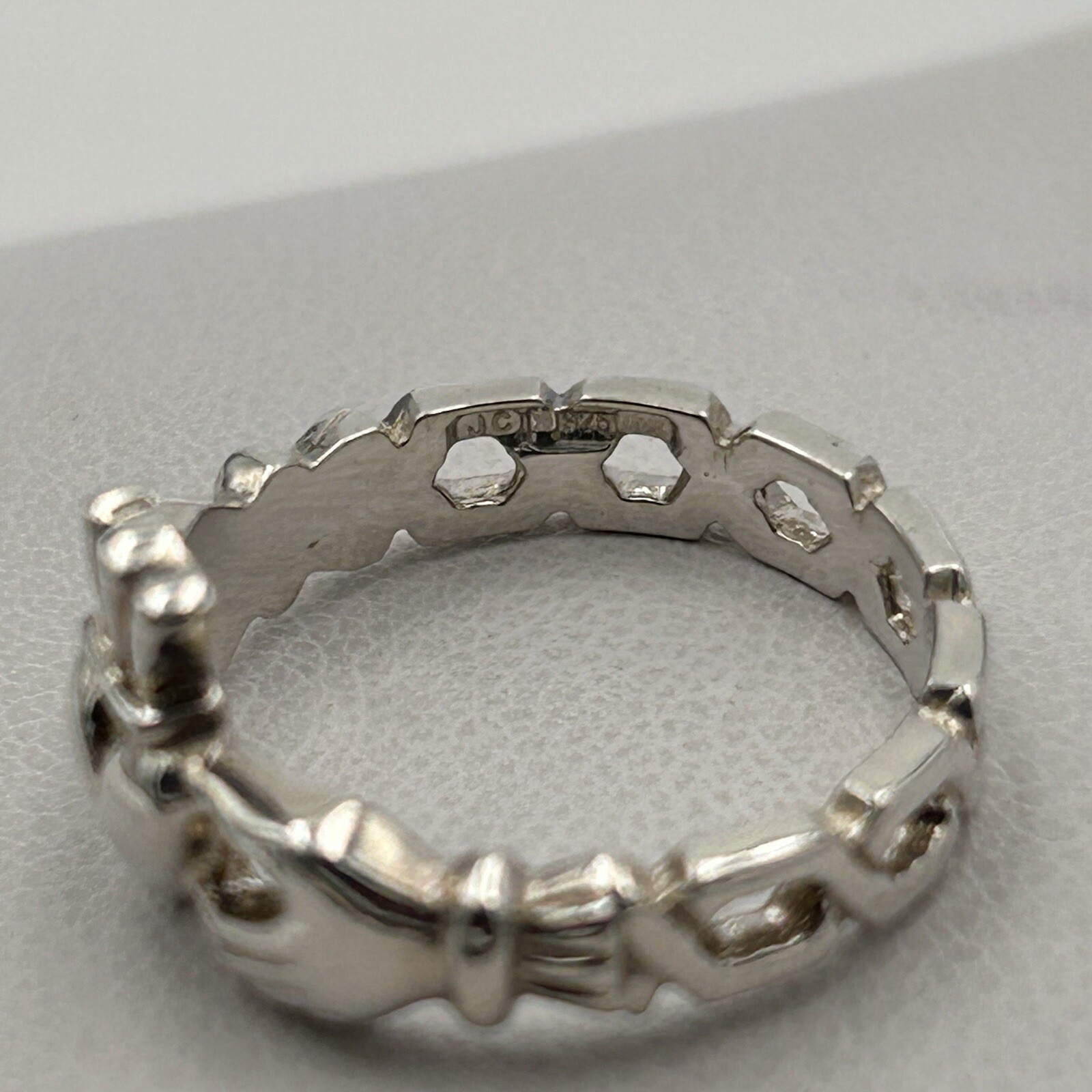 как выглядит 925 Sterling Silver Celtic Irish Claddagh Ring Honeycomb Band Love Sz 5.5 фото