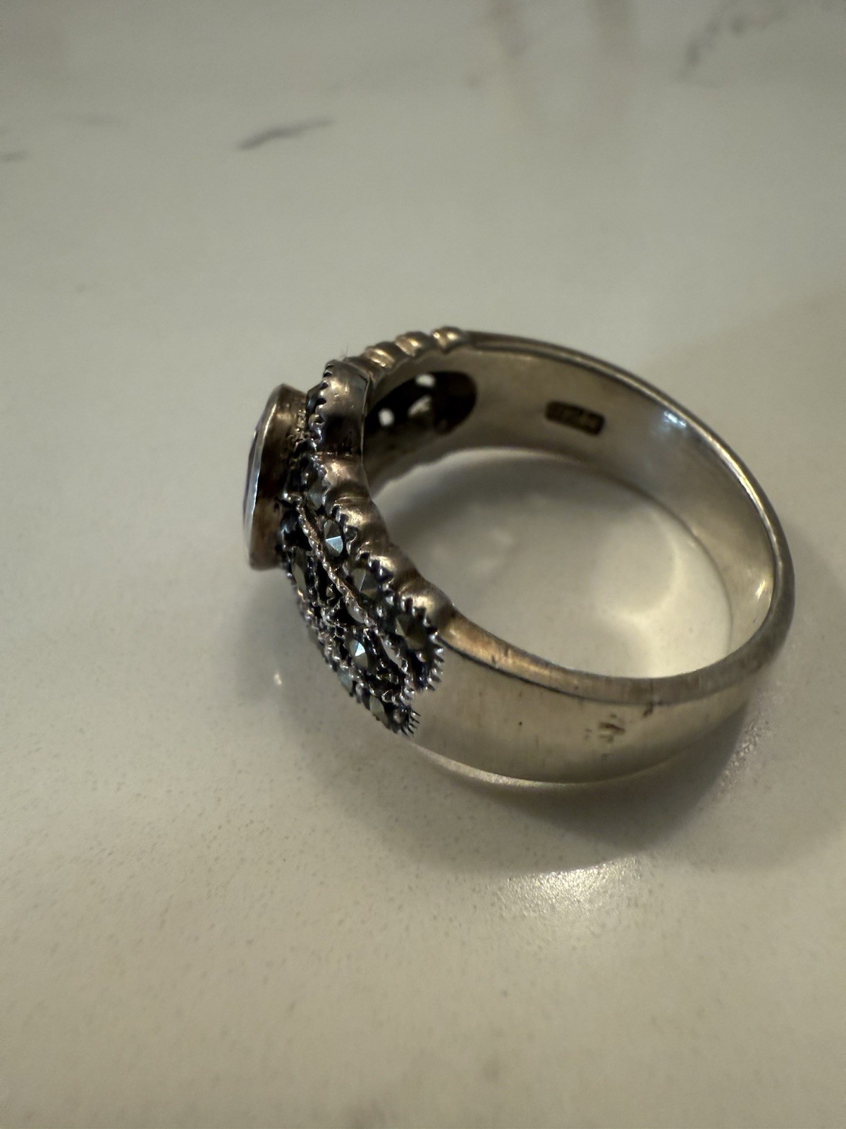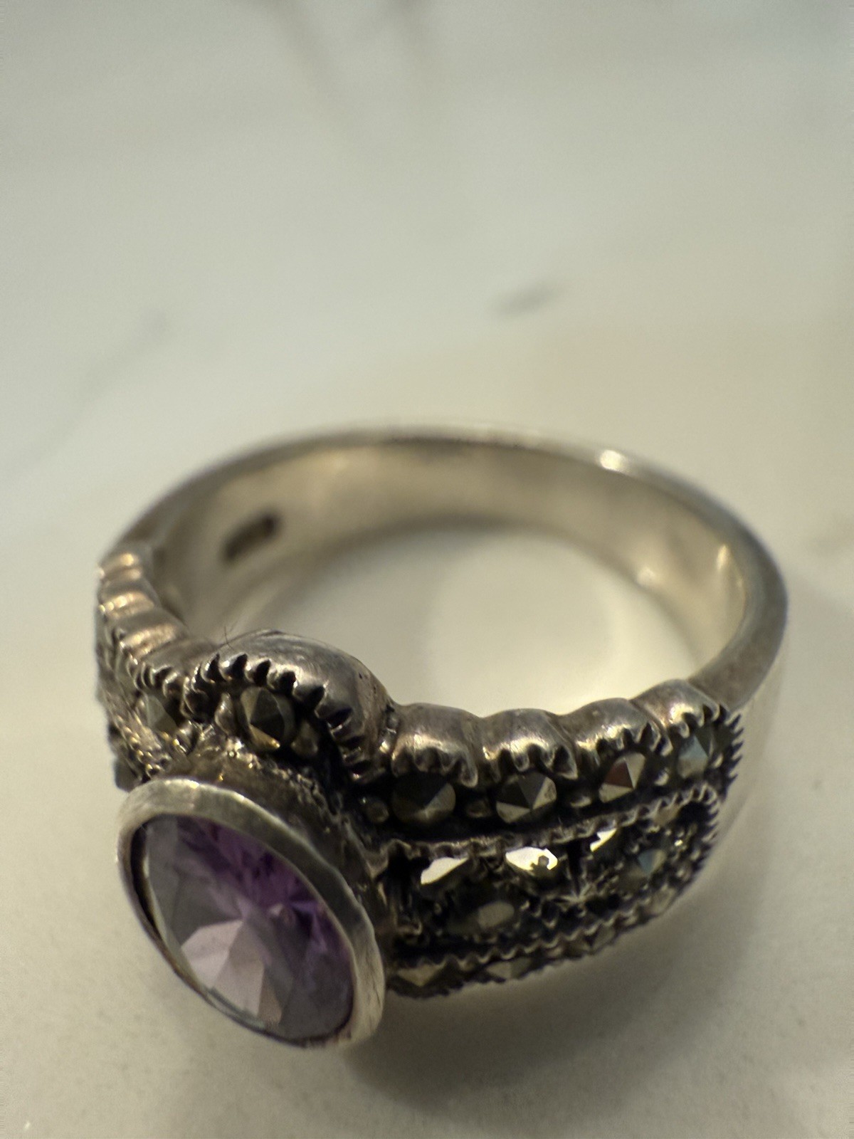 как выглядит Beautiful Sterling Silver Amethyst And Marcasite Ring size 9 фото