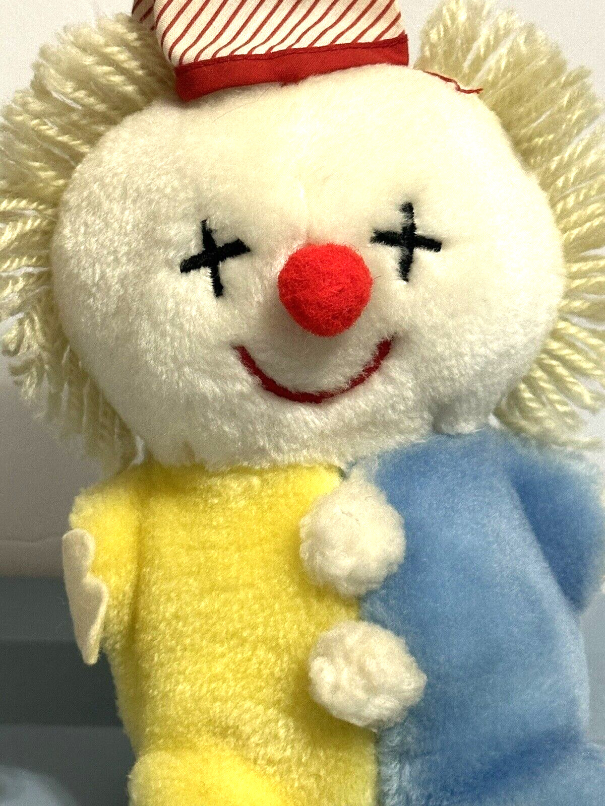 как выглядит Vintage Eden Pastel Yellow Clown Plush Stuffed Animal Bell Rattle Sleeping Hat фото