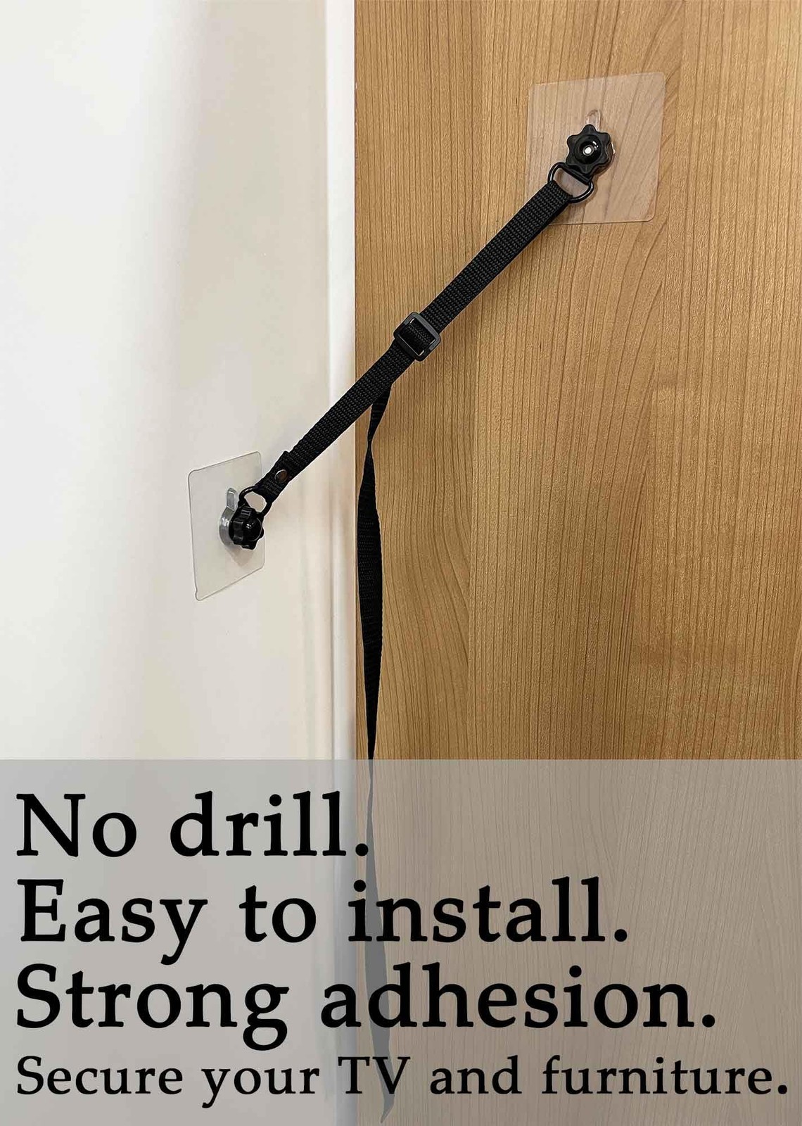 OeckuXIY 2 Pack Adjustable TV Safety Straps, No-Drill 2 Pack 1to1Strap