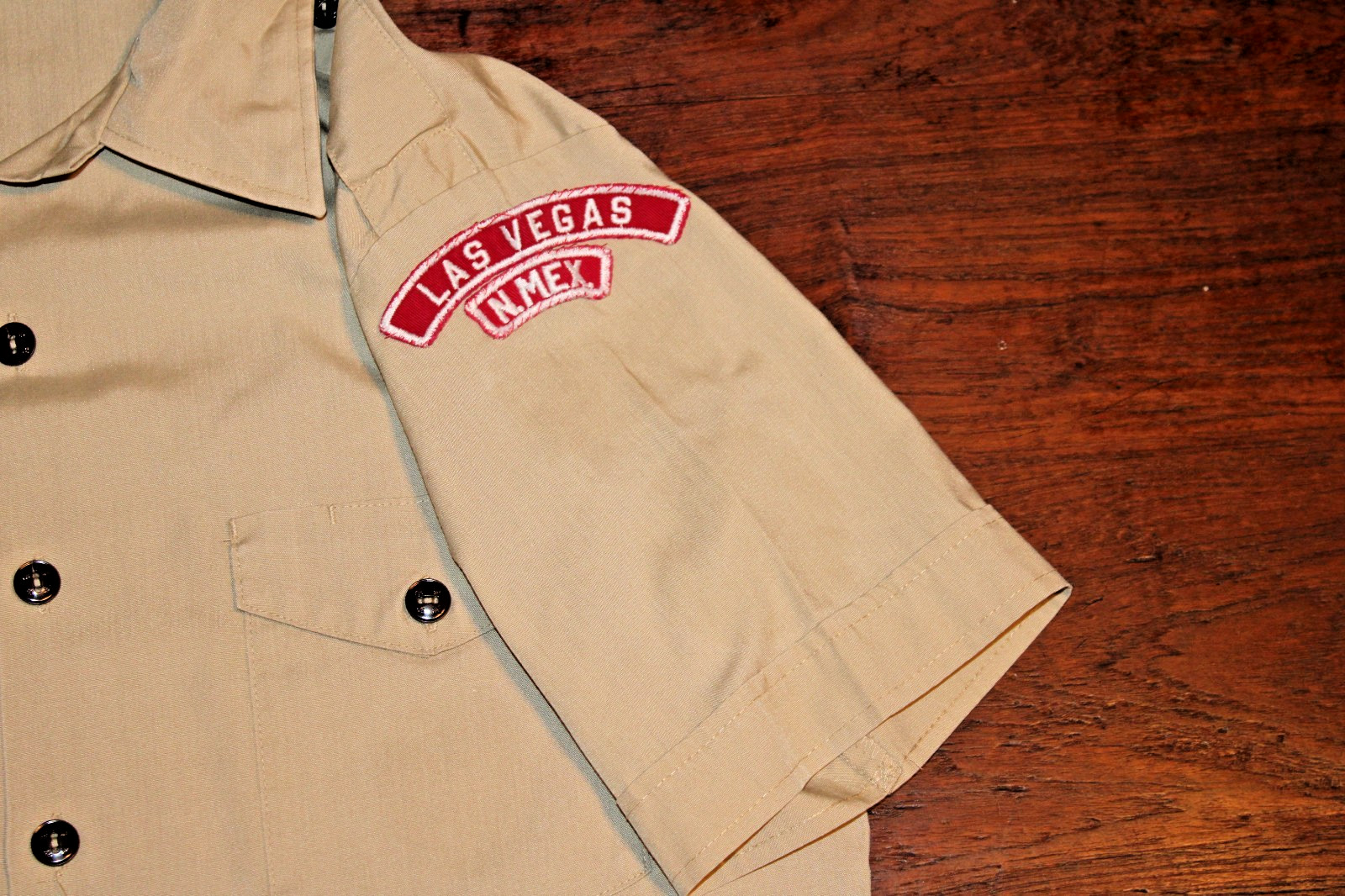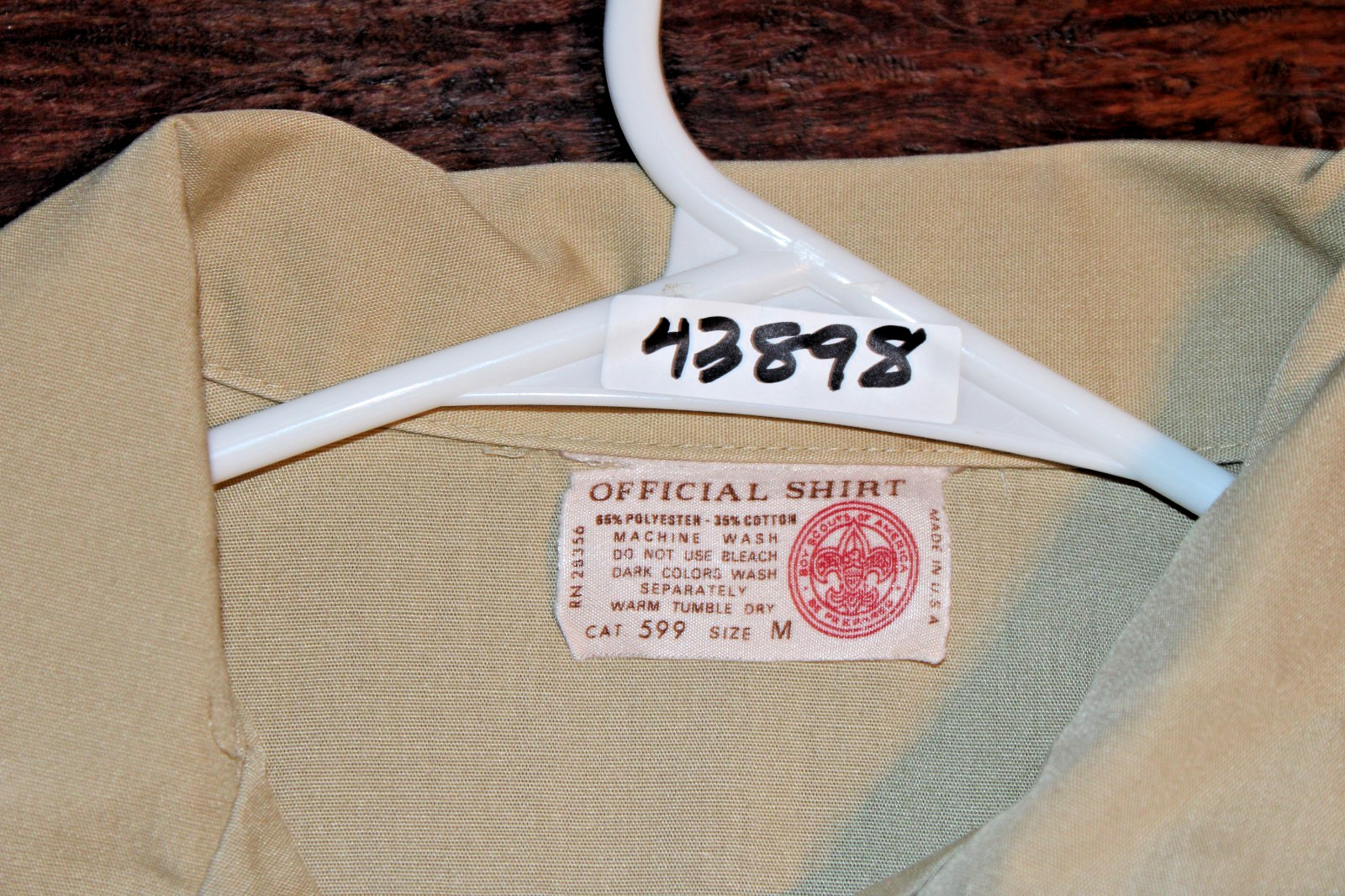 Boy Scouts of America BSA Men's Shirt Tan Medium Check Measurements Sewn Patch