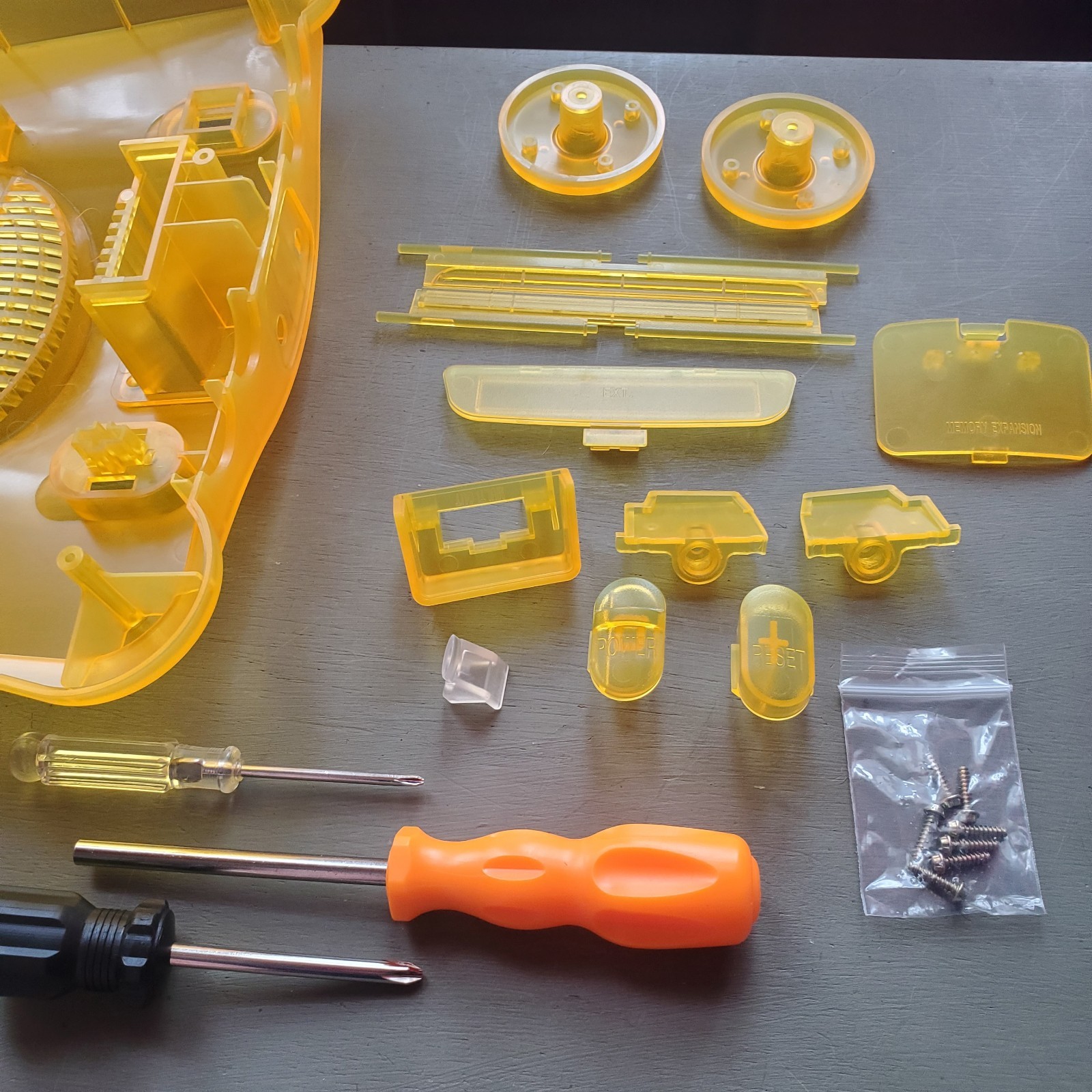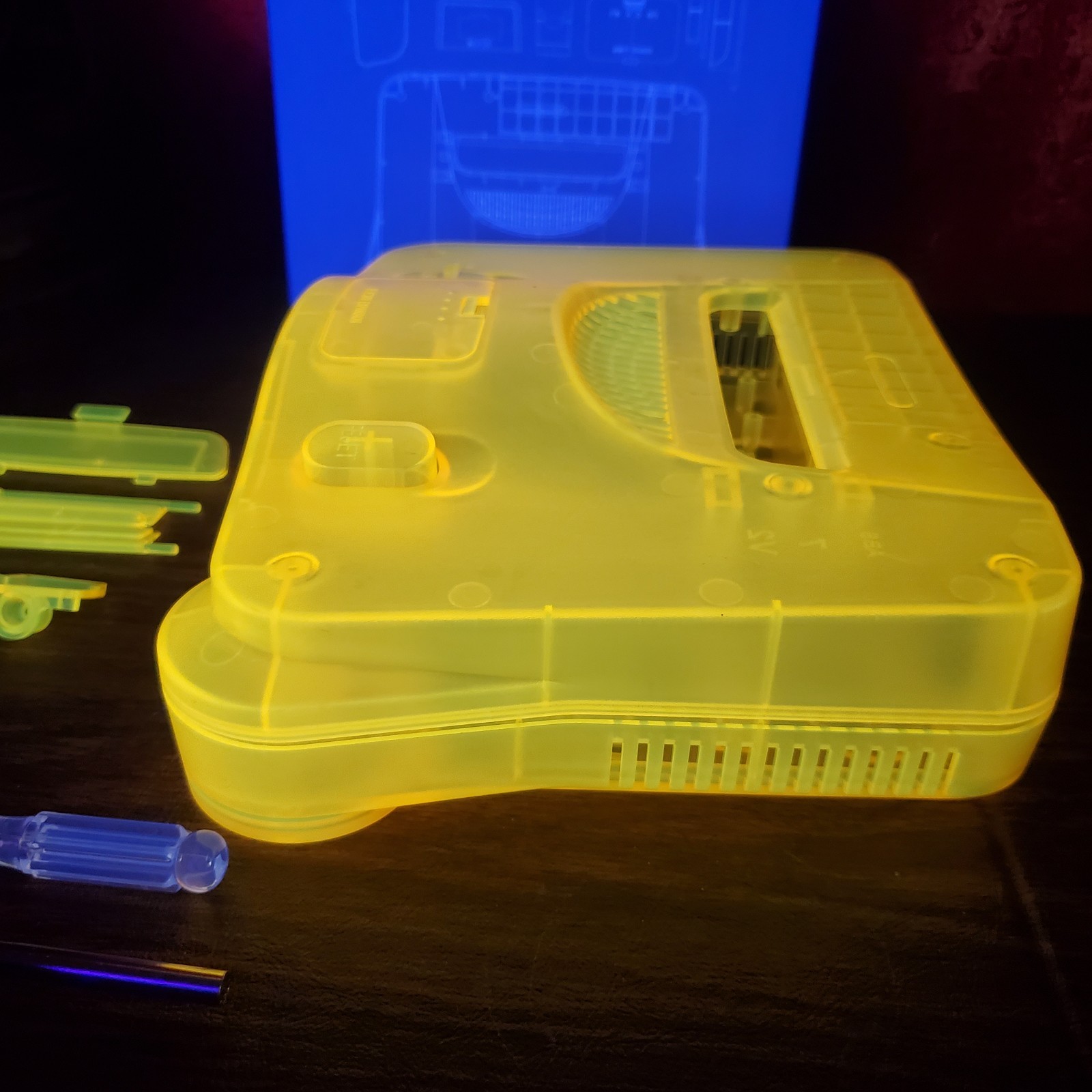 N64 Shell Replacement SUNSET ORANGE Case. Blacklight Reflective. No Stickers