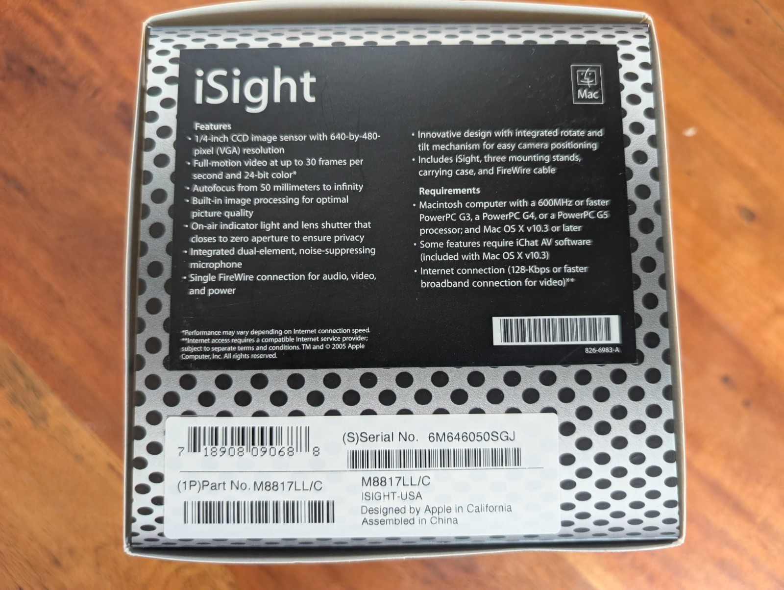 New Open Box Apple iSight Webcam Camera M9330LL w/ Noise Suppression Microphone