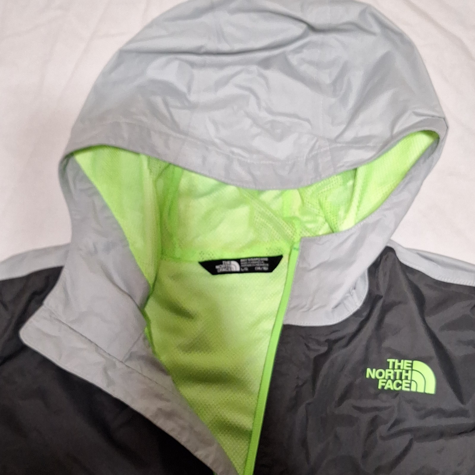 The North Face DryVent Boys Windbreaker Jacket L 14/16 Hooded Gray Neon Green
