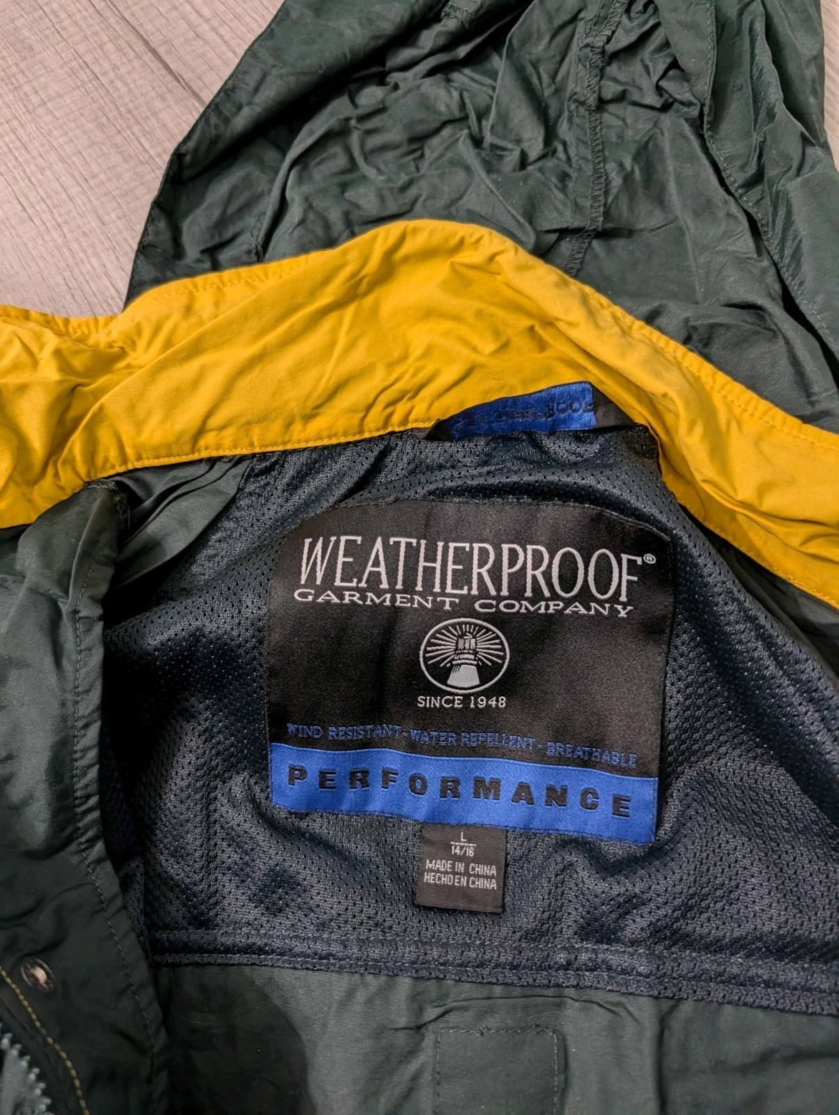 weatherproof garment company Windbreaker jacket Kids Sz LG 14/16 Green Yellow