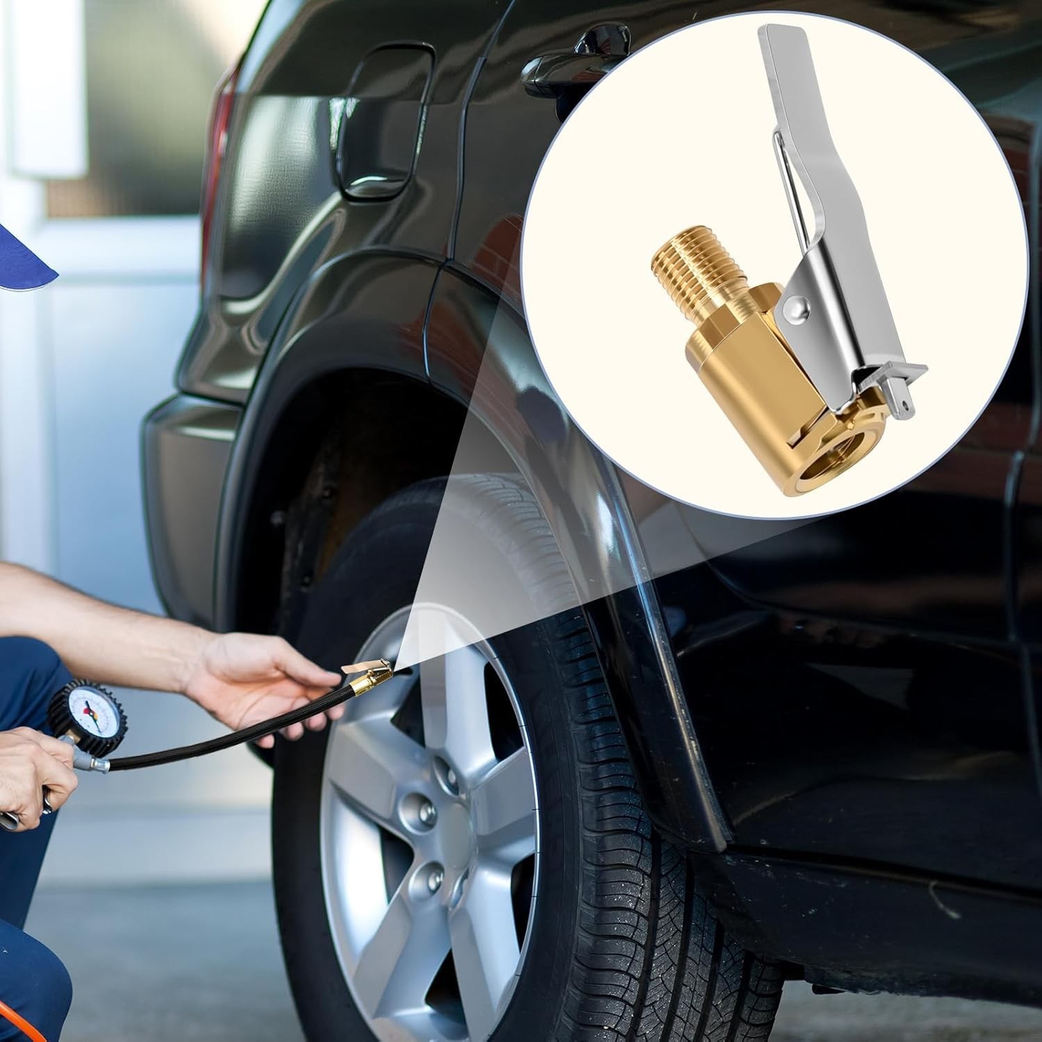 • 2-Pack Brass Tire Air Chuck, Locking Quick Connect Inflator Hose Adapter, No Lea