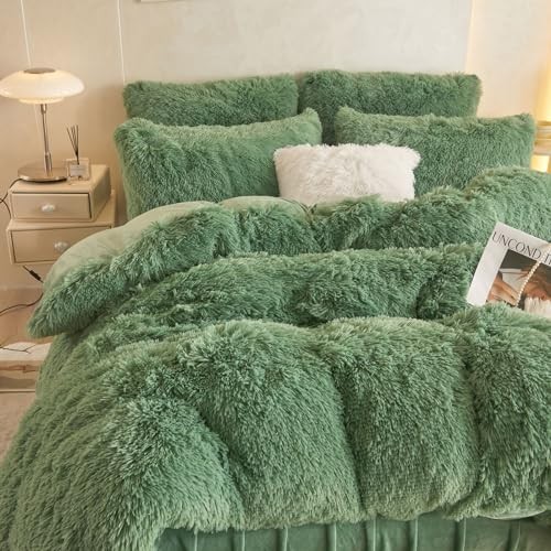 Fuzzy Comforter Cover Set, Fluffy Bedding Set 2 Pieces 1 Plush Twin Sage Green