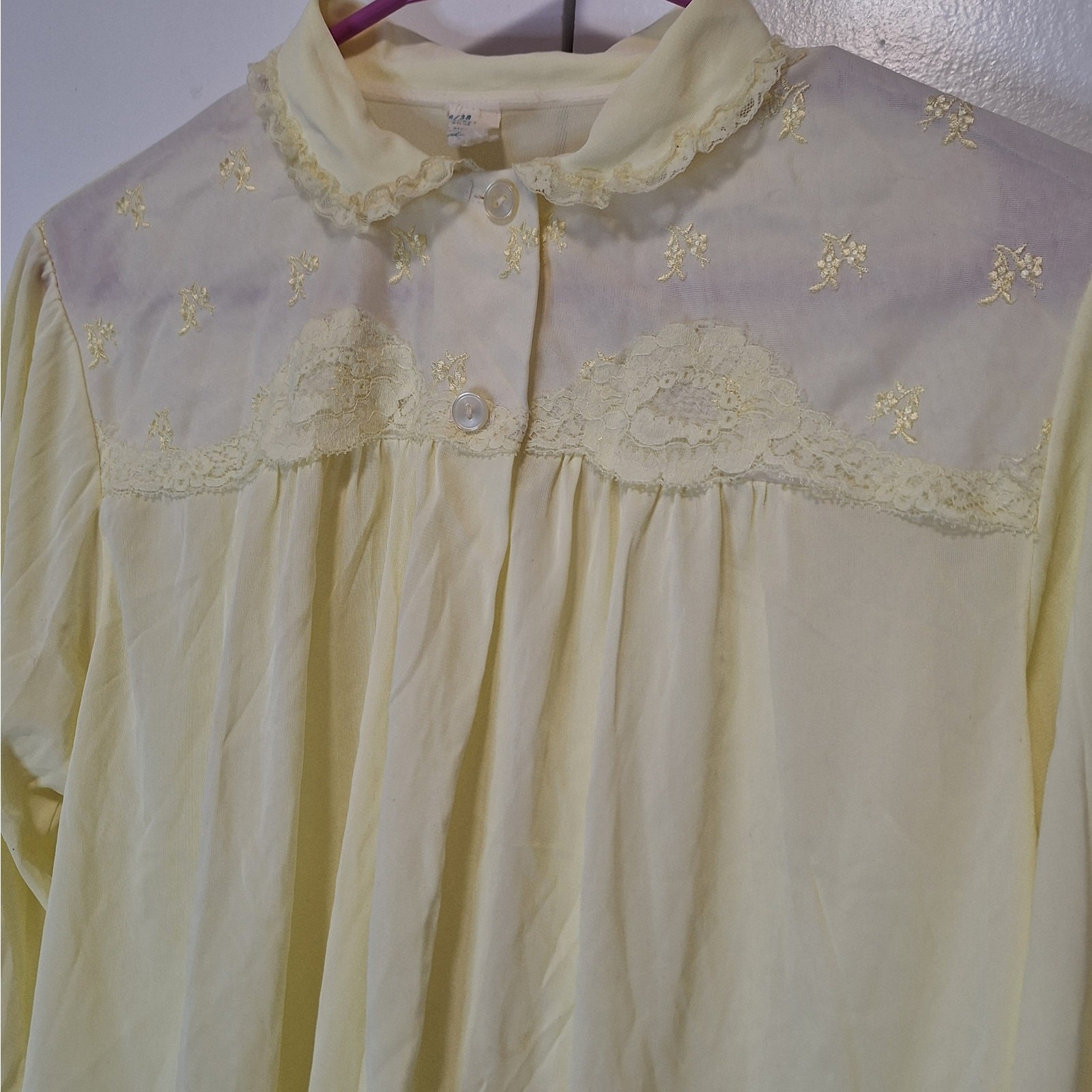 как выглядит Philmaid Vintage Duckling Yellow Bed Jacket Nylon Lace Embroidered Sz 36/38 S-M фото