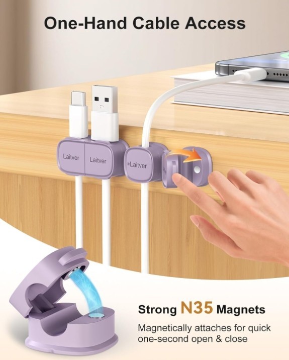 Magnetic Cable Clips Cord Organizer Holder Strong for charging HDMI USB cables 6