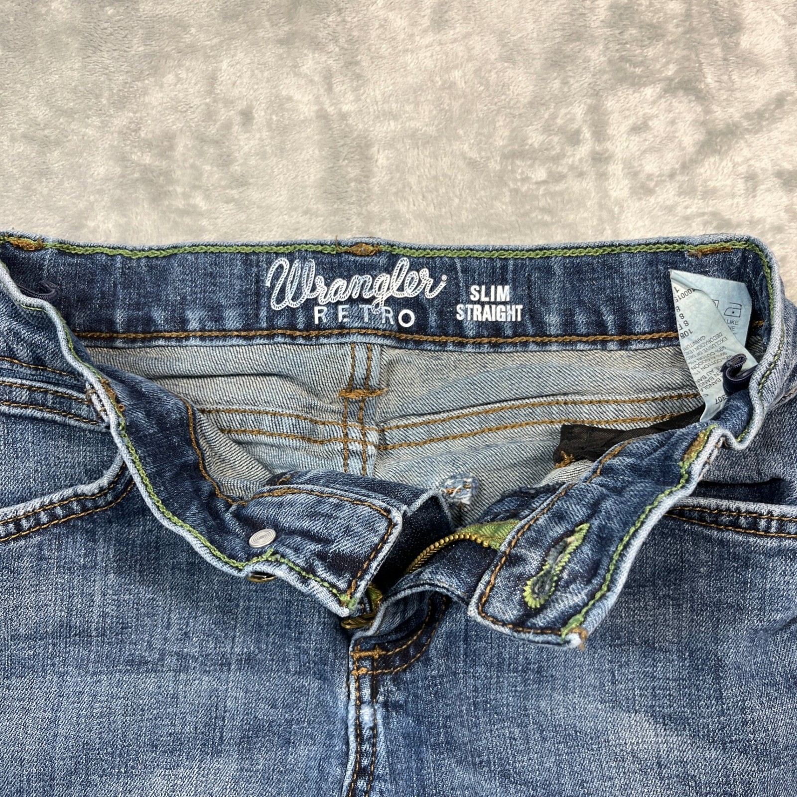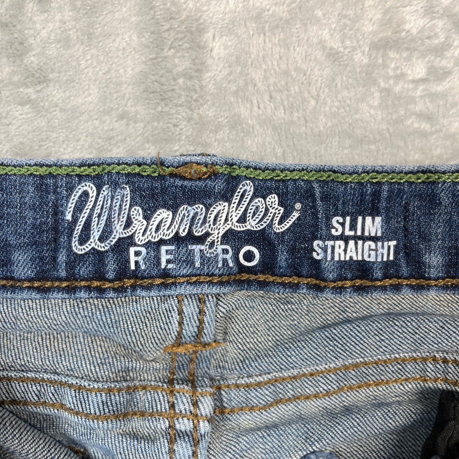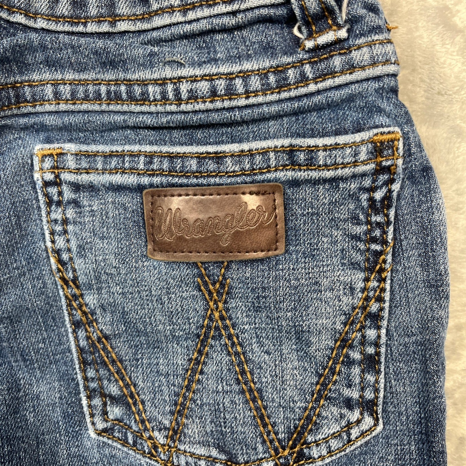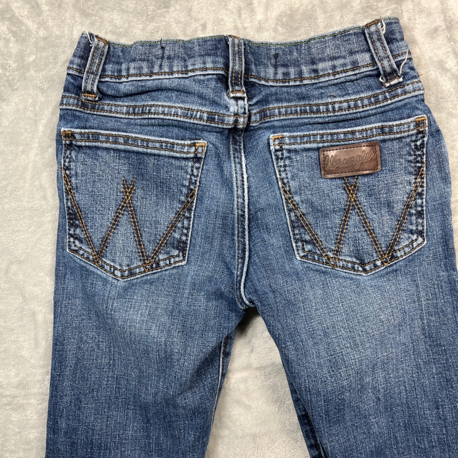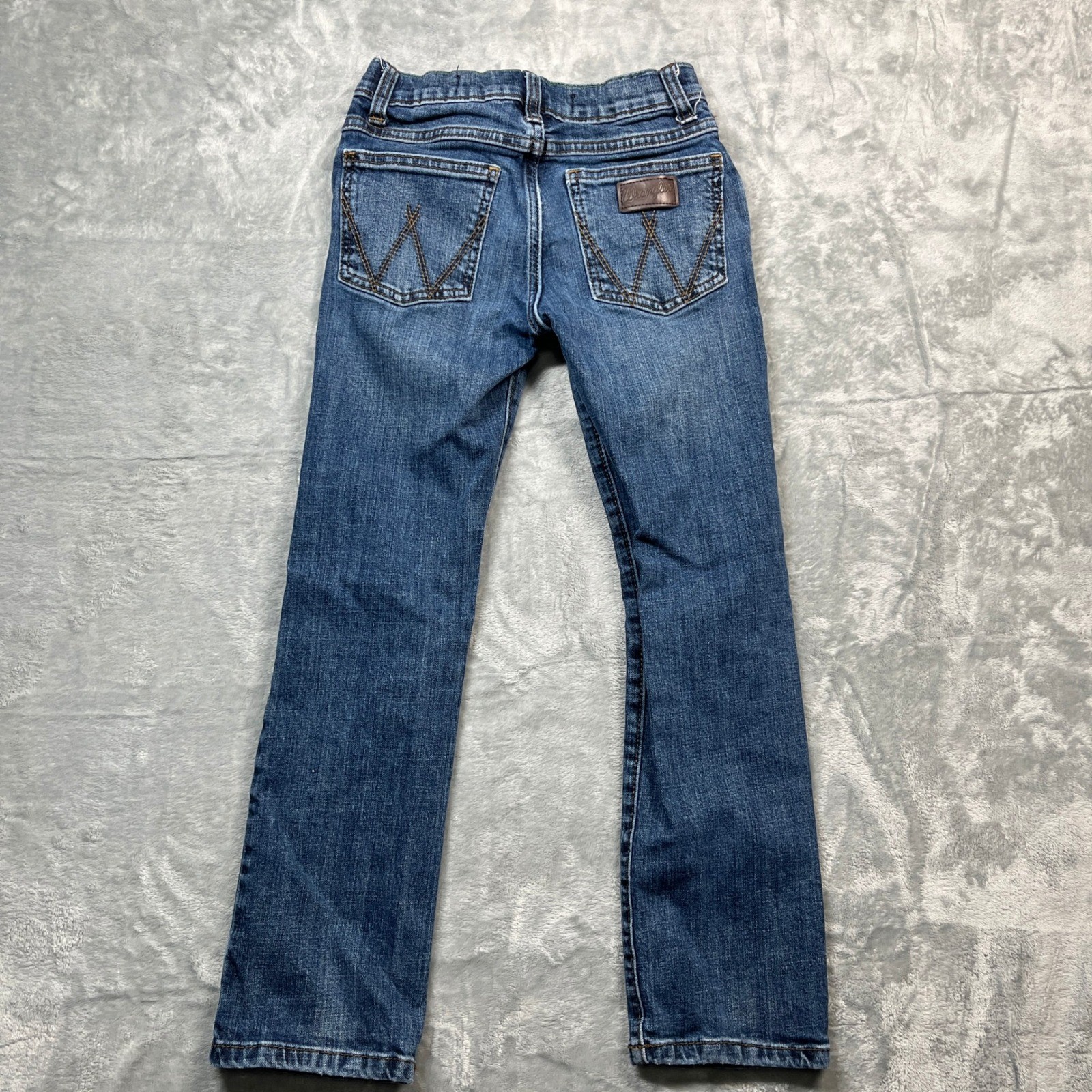 как выглядит Wrangler Retro Slim Straight Jeans Kids Size 8 Regular Blue Distressed фото