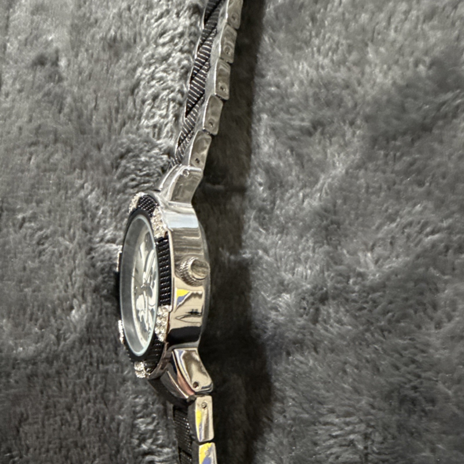 • Disney Mickey Mouse Wristwatch Silver Black Crystal Accents Japan Movement