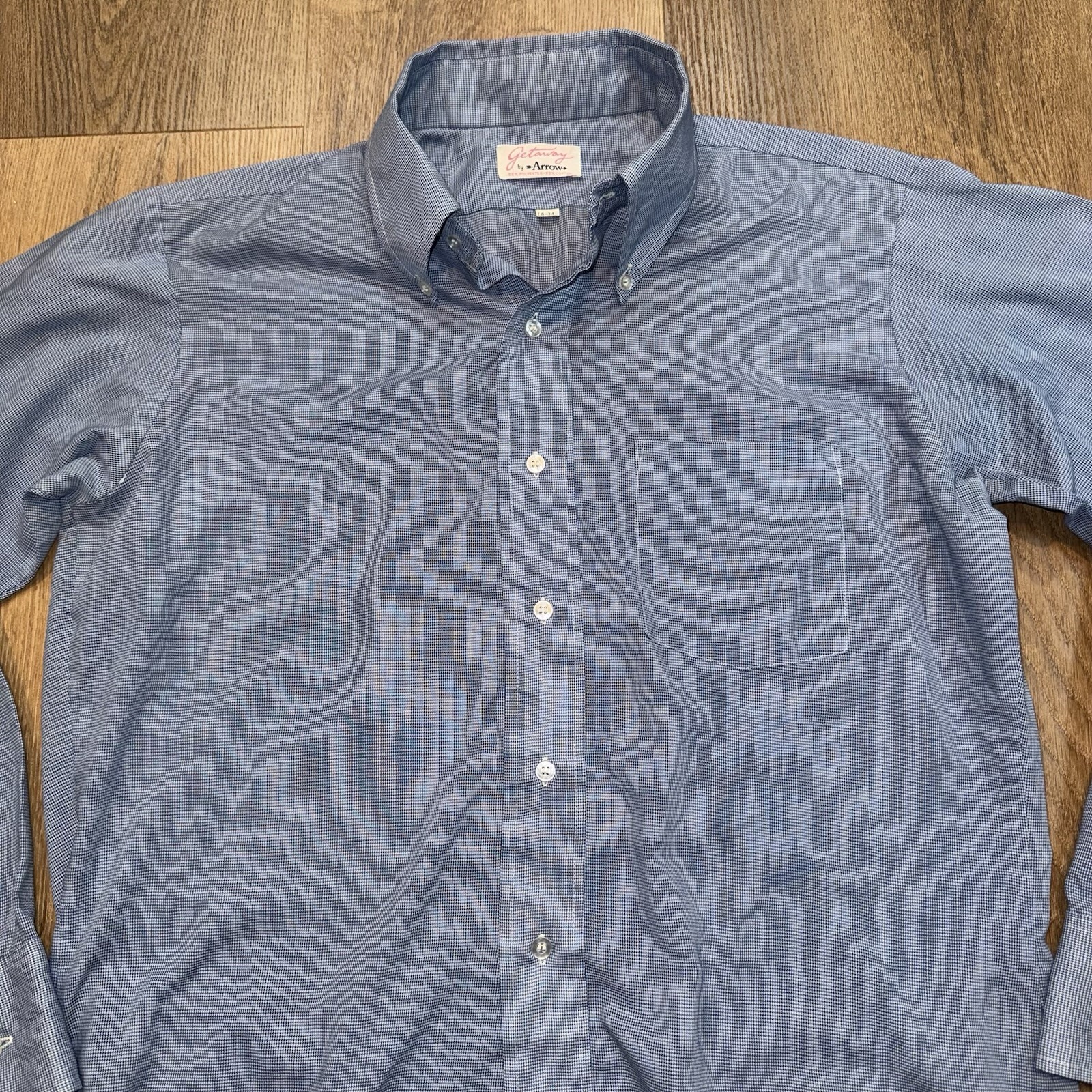как выглядит Vtg 60s 70s Arrow Dress Shirt Mens Getaway Plaid Tapered MCM Disco Large 16 34 фото
