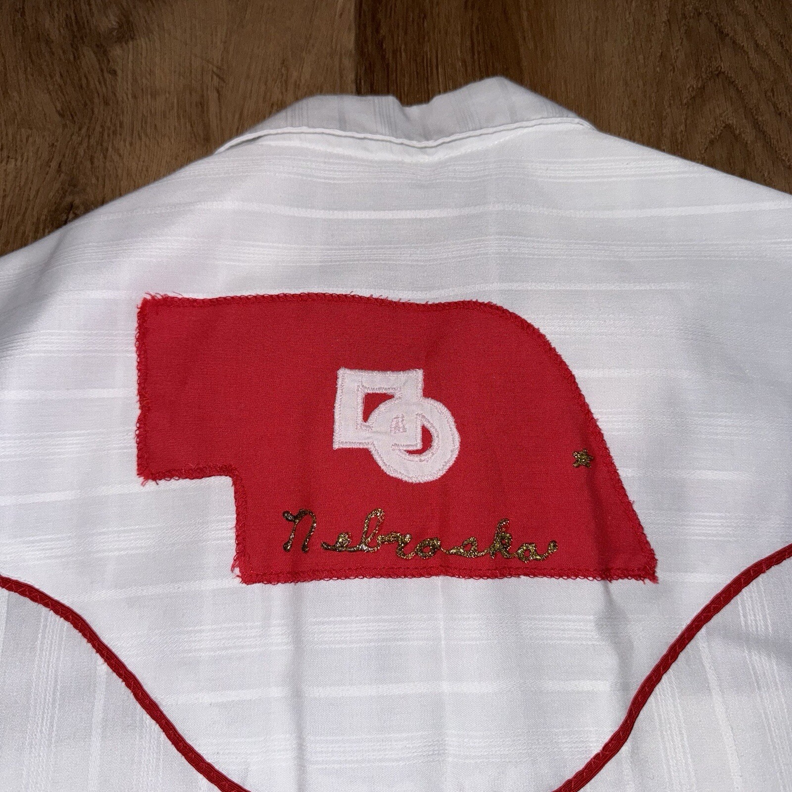Nebraska Cornhuskers Shirt Pearl Snap Western Cowboy Rockabilly VTG Mens Large
