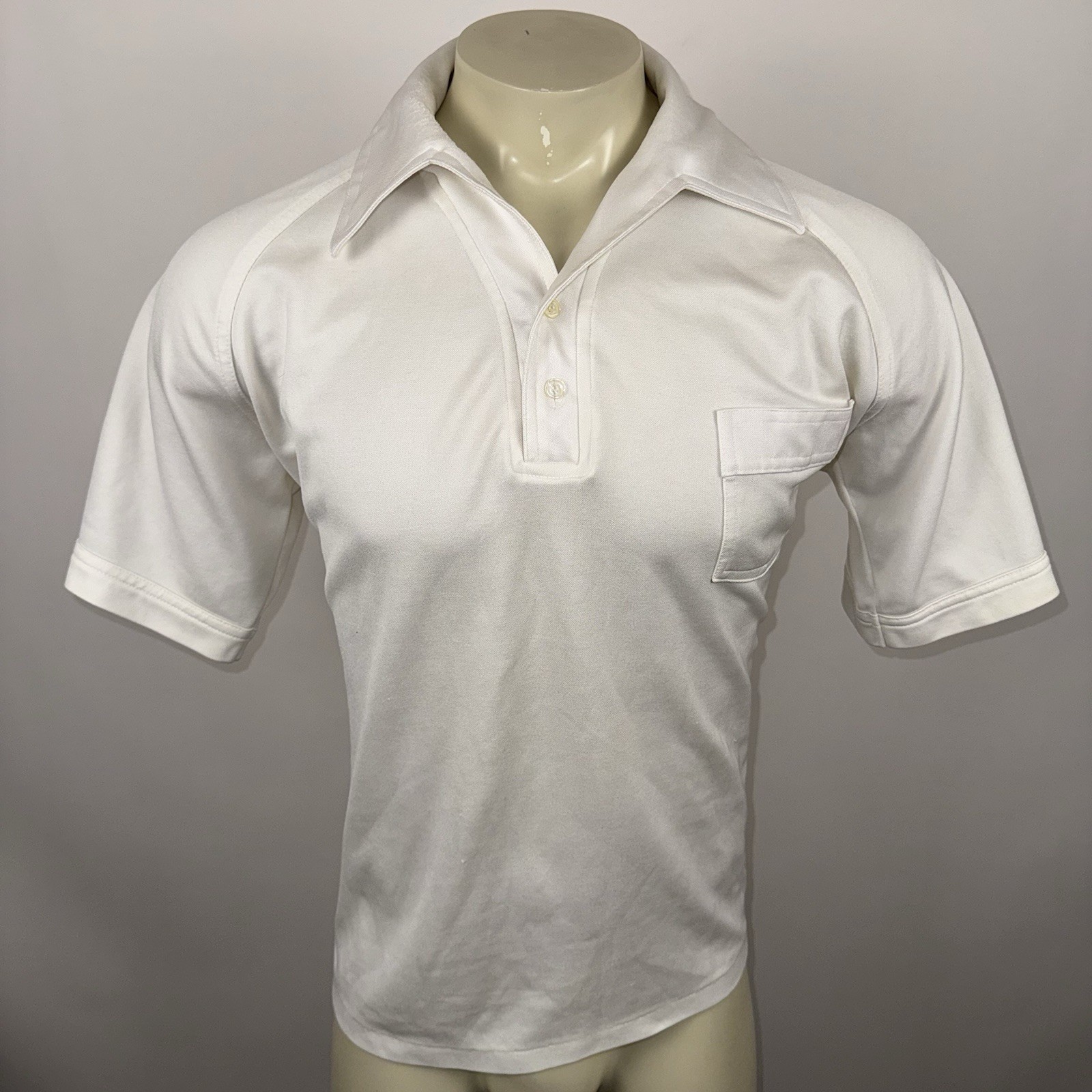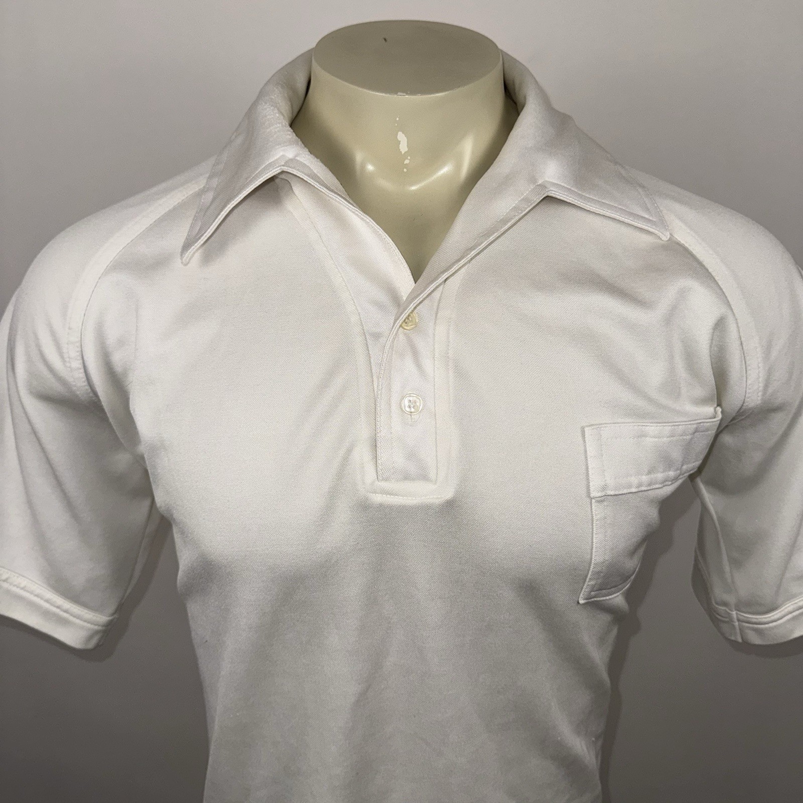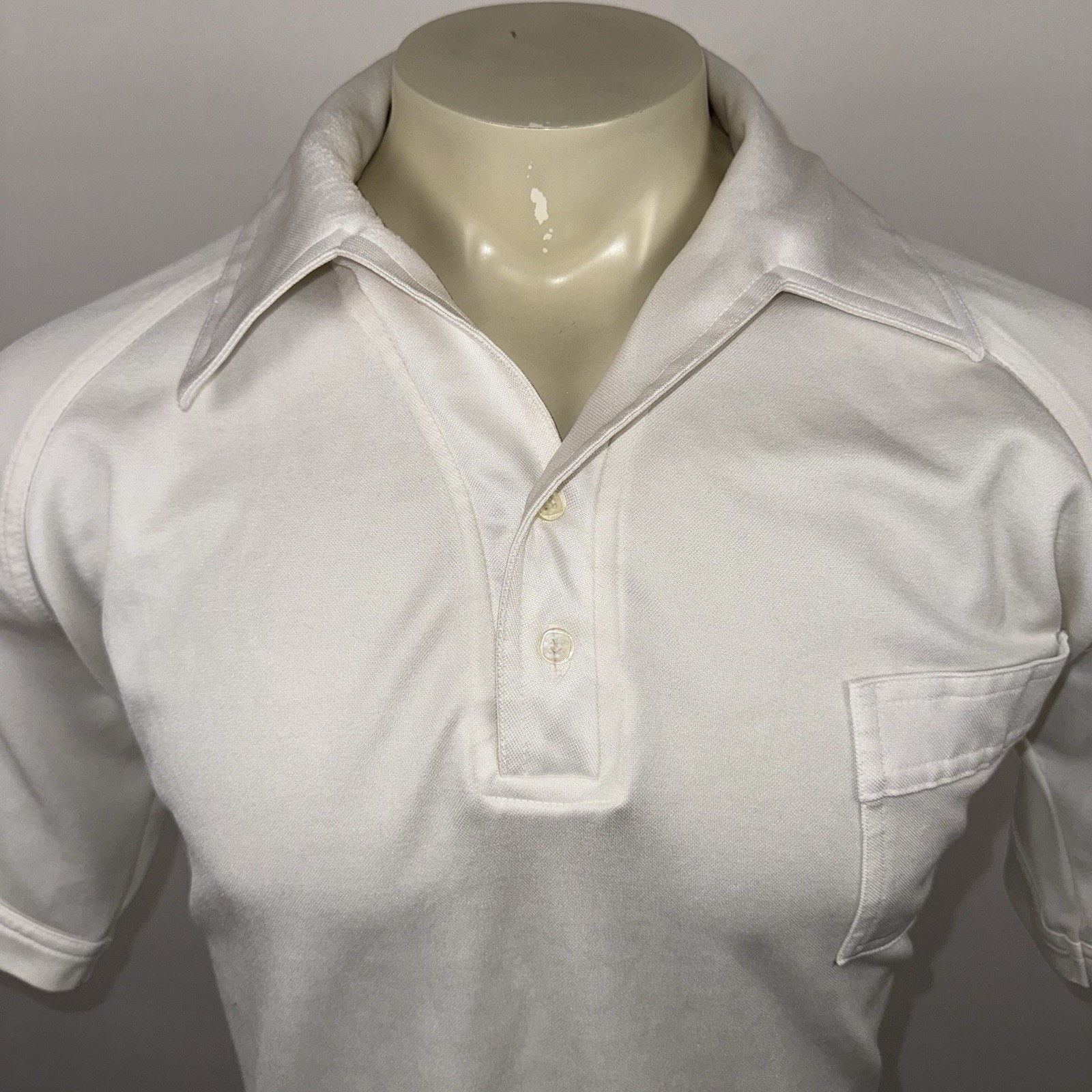Vtg 60s 70s Disco Shirt Mens XL Big Collar White Stretchy MCM Mod Nik JCPenney