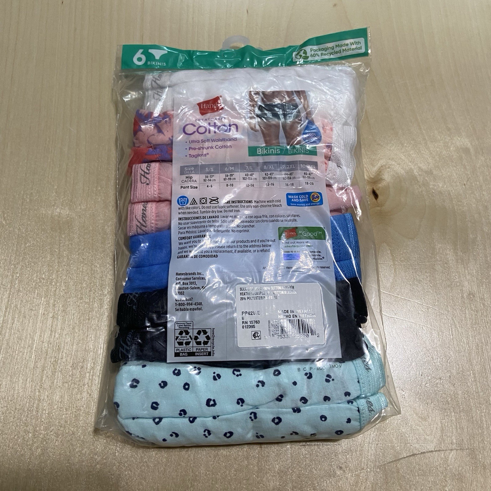 Hanes Women s Size 8/XL Soft Breathable Tagless Cotton Bikini Panties 6 Pack