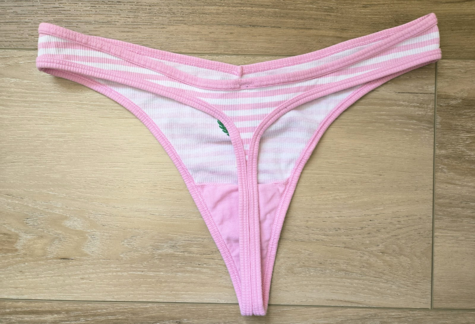 как выглядит Victorias Secret Love PINK Striped Ribbed Cotton Thong String Panties XXL 2XL фото