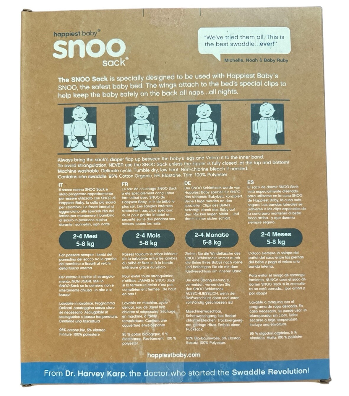 Happiest Baby Snoo Sack Organic Cotton Medium 2-4 Months 12-18 Lbs Midnight Blue