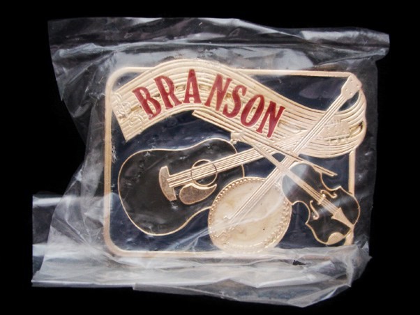 KF29163 NOS 1980s BRANSON MISSOURI COUNTRY MUSIC GOLDTONE BELT BUCKLE