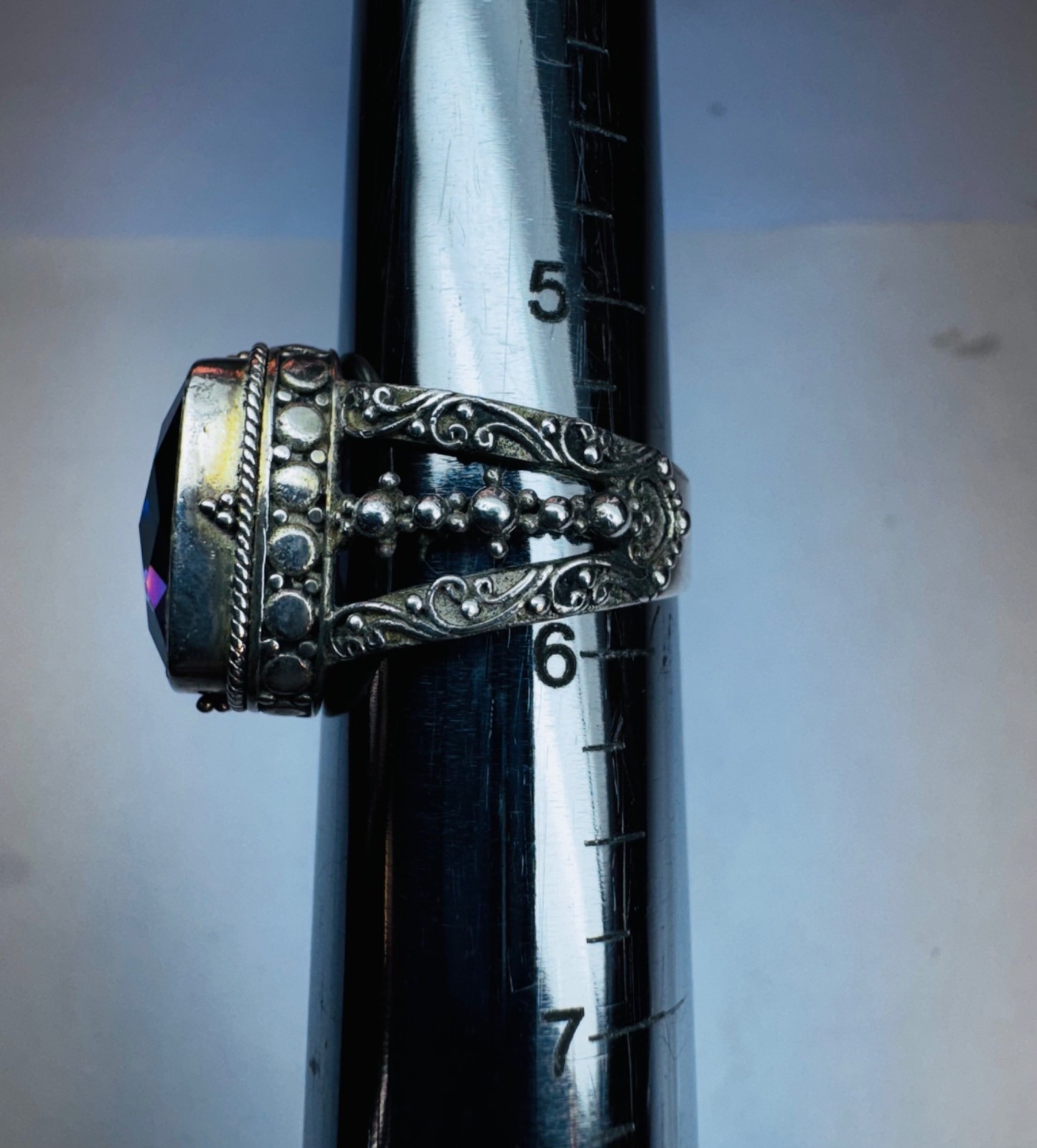 Vintage 925 Sterling Silver Faceted Mystic Topaz Ring Size 5.75 Estate Filigree