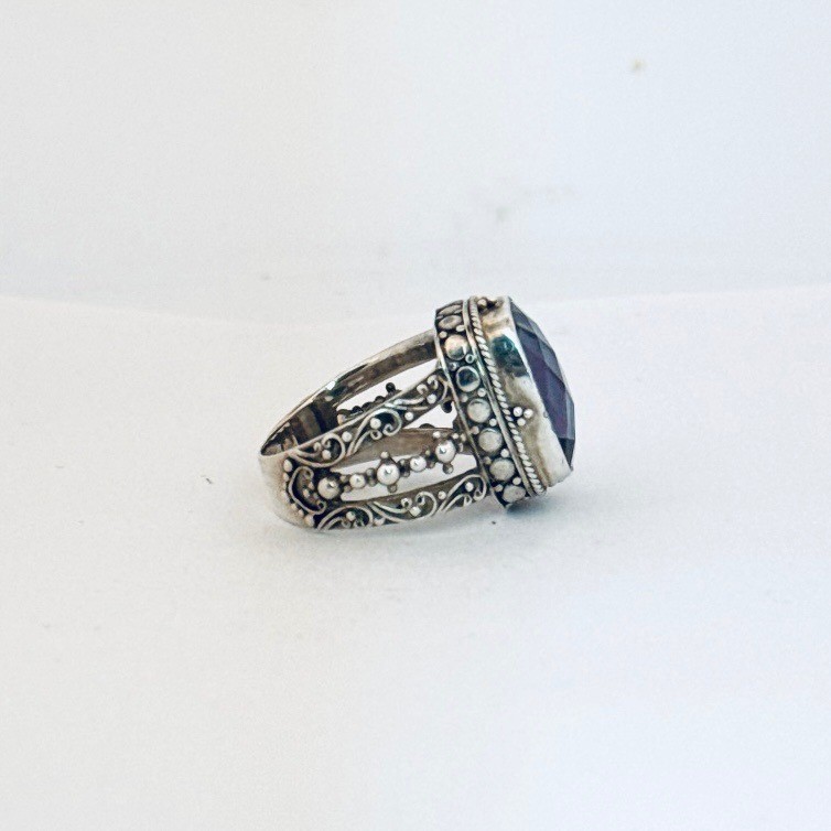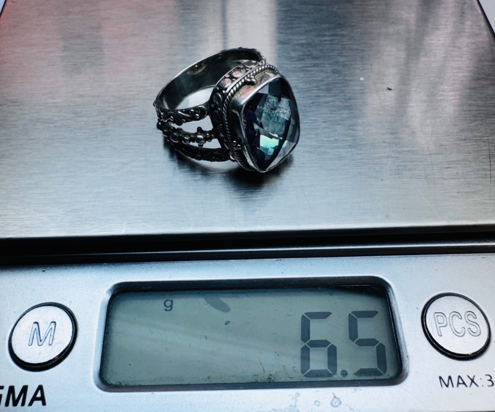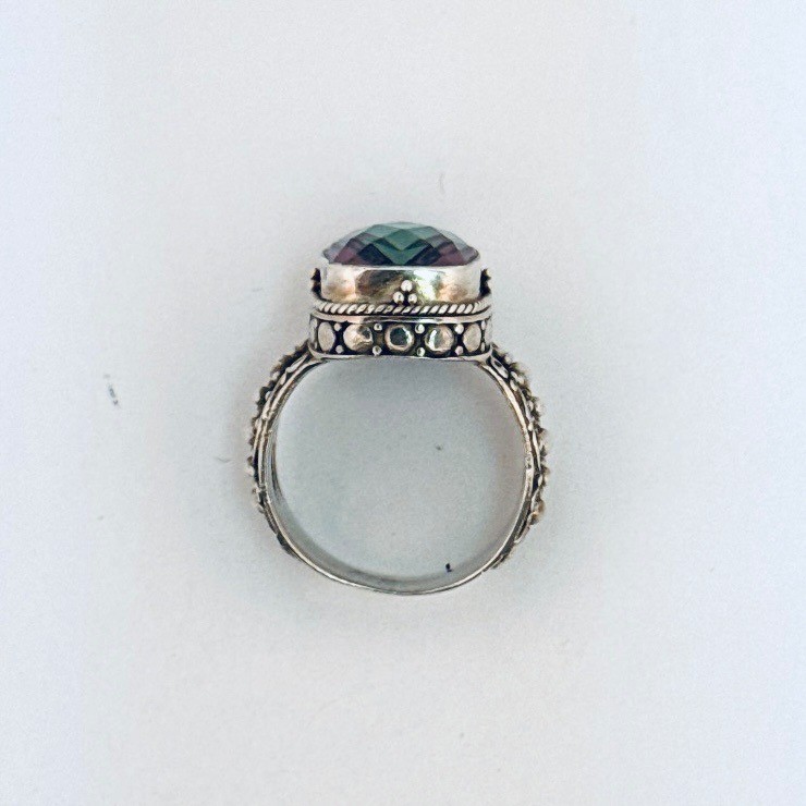как выглядит Vintage 925 Sterling Silver Faceted Mystic Topaz Ring Size 5.75 Estate Filigree фото