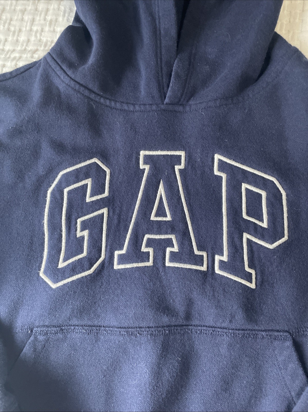 Gap Kids Unisex SZ M Classic Comfy Sweatshirt Hoodie Navy Blue White Lettering