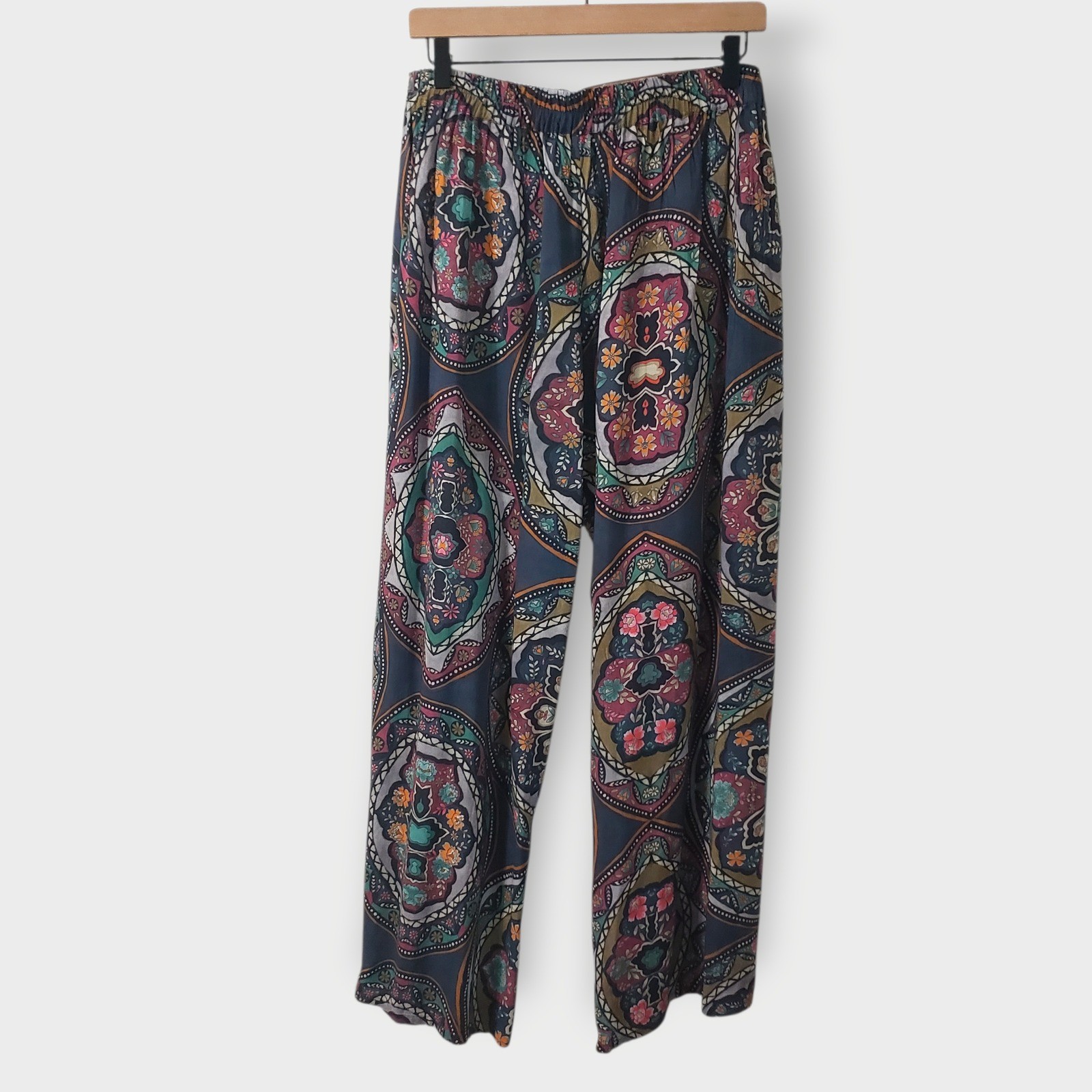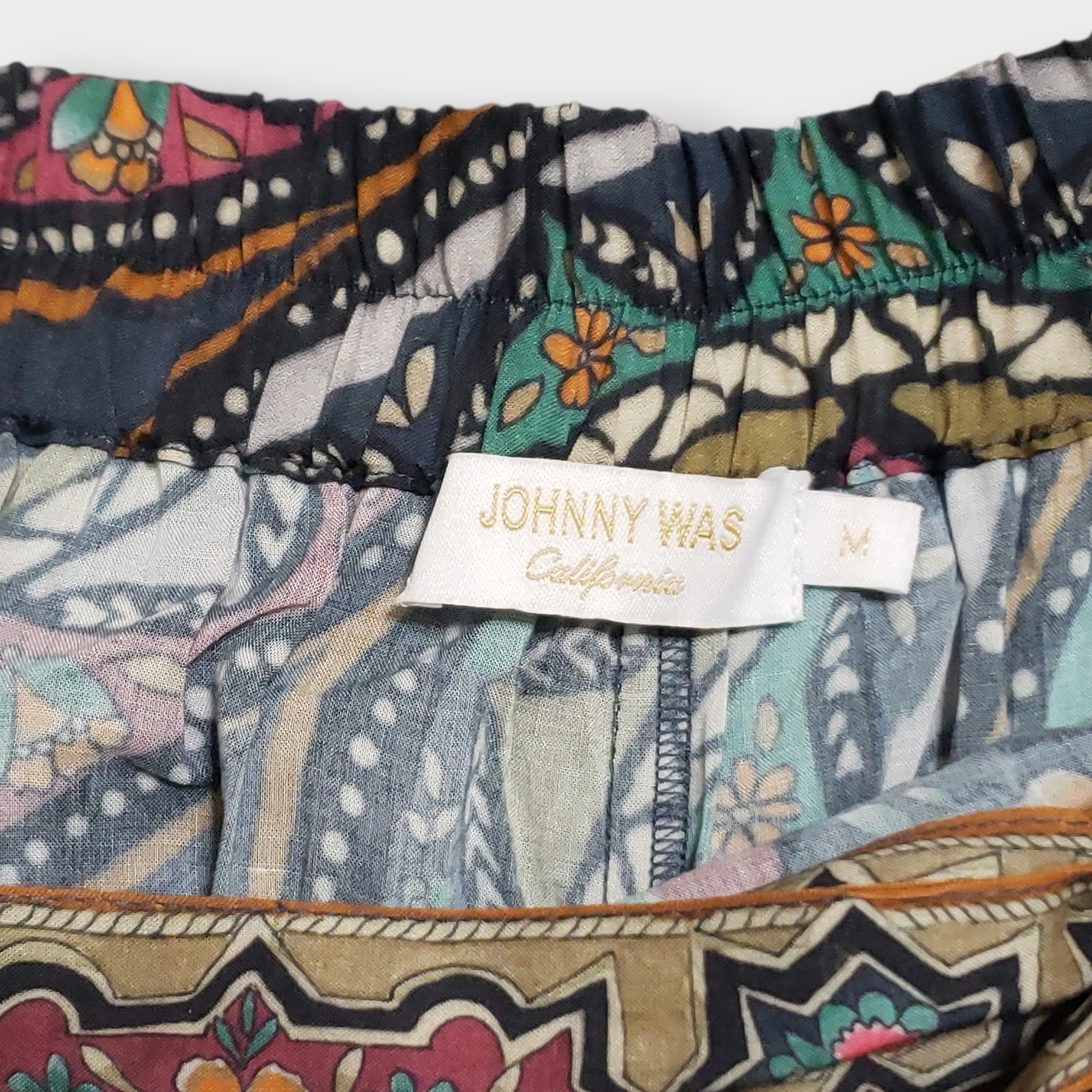 Johnny Was Spezia Wrap Pants Viscose Paisley Floral Split Wide Leg Medium Boho