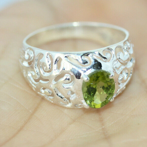 как выглядит New Cast Genuine 2.5 CT Oval VS1 Peridot Filigree 925 Sterling Silver Ring Sz 12 фото