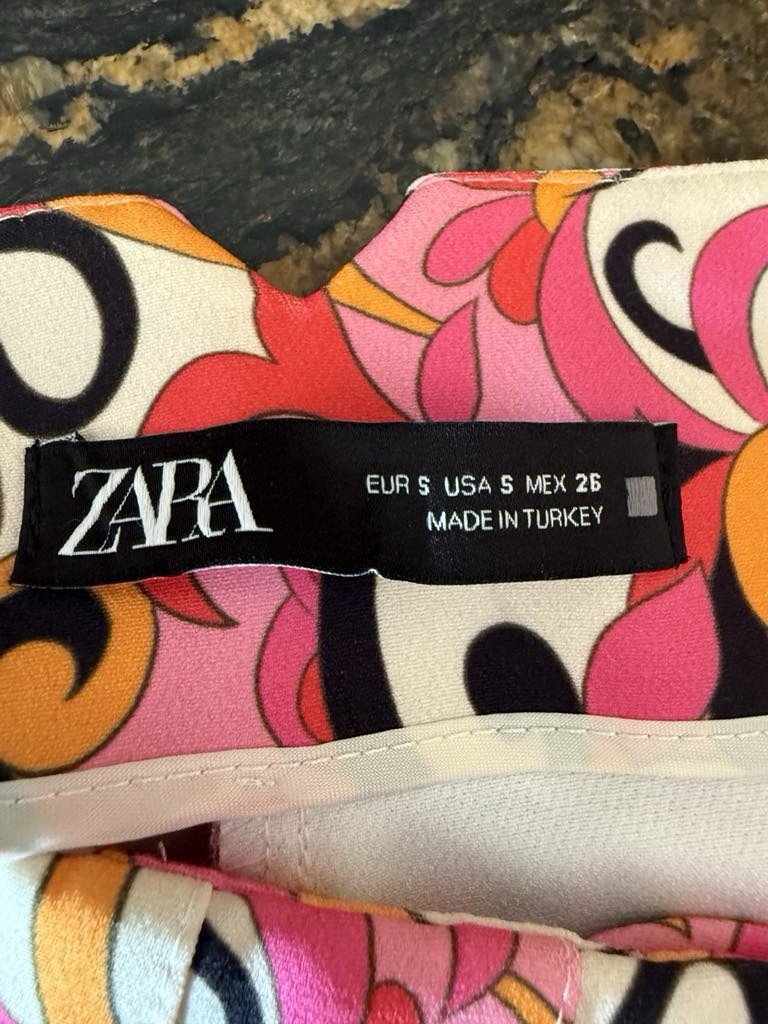 Zara Printed High-Rise Trouser Pants Tapered Leg Floral Valentine Pink Size S