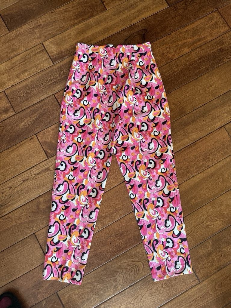 как выглядит Zara Printed High-Rise Trouser Pants Tapered Leg Floral Valentine Pink Size S фото