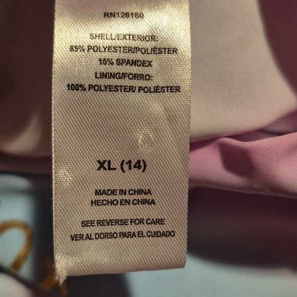Betsey Johnson girls XL pink blue with gold shell swim rash guard, VGUC