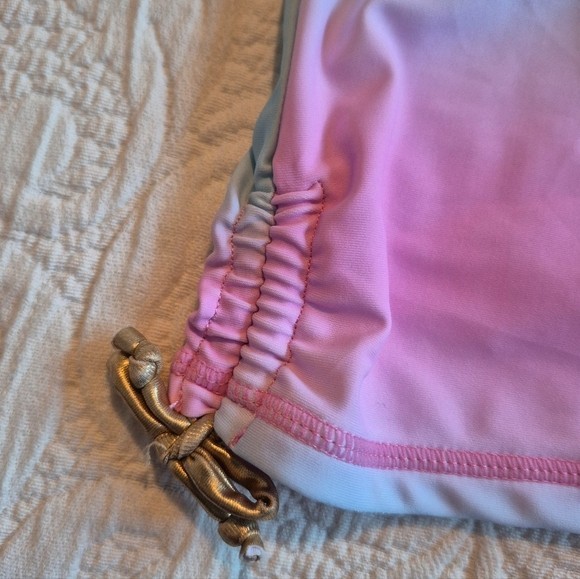 как выглядит Betsey Johnson girls XL pink blue with gold shell swim rash guard, VGUC фото