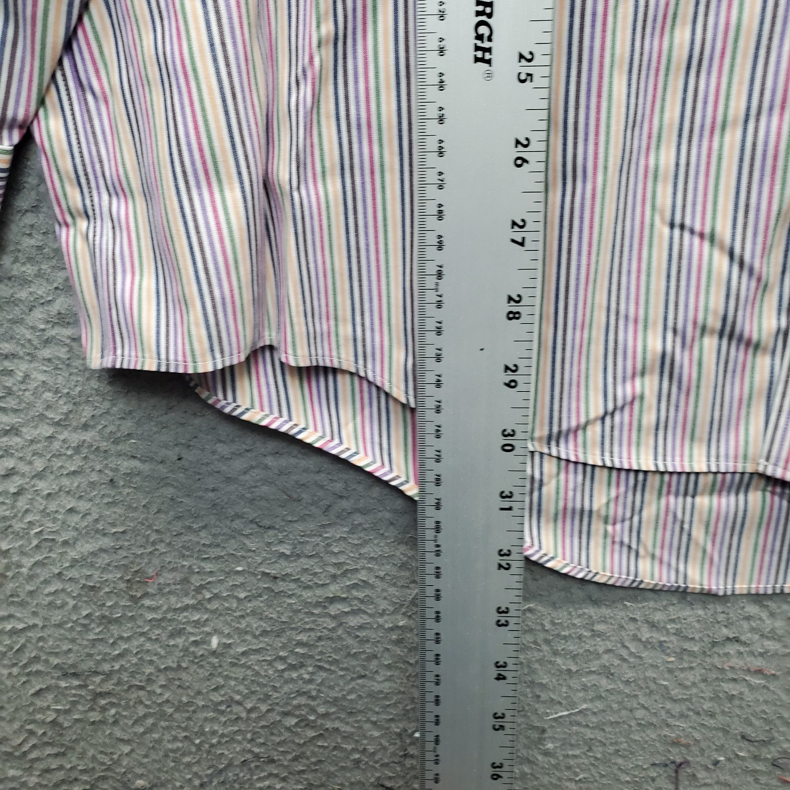как выглядит Lands End Dress Shirt Mens 17 Multi Striped Long Sleeve Collared Button Down фото