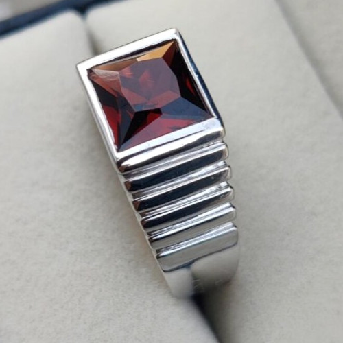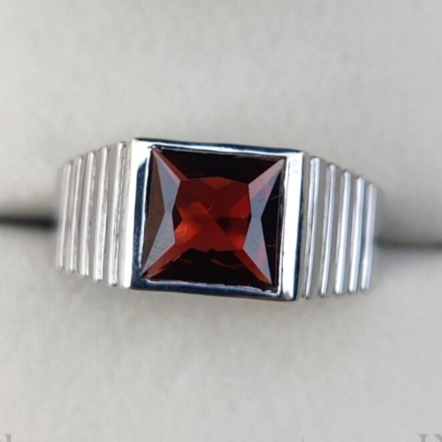 как выглядит Natural Garnet Gemstone Ring For Mens With 925 Sterling Silver PrincessCut Ring фото