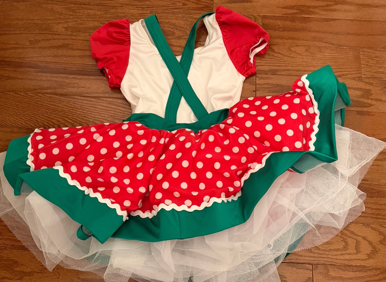 Weissman Dance Costume Kids Size 7/8 Red Green And White EUC