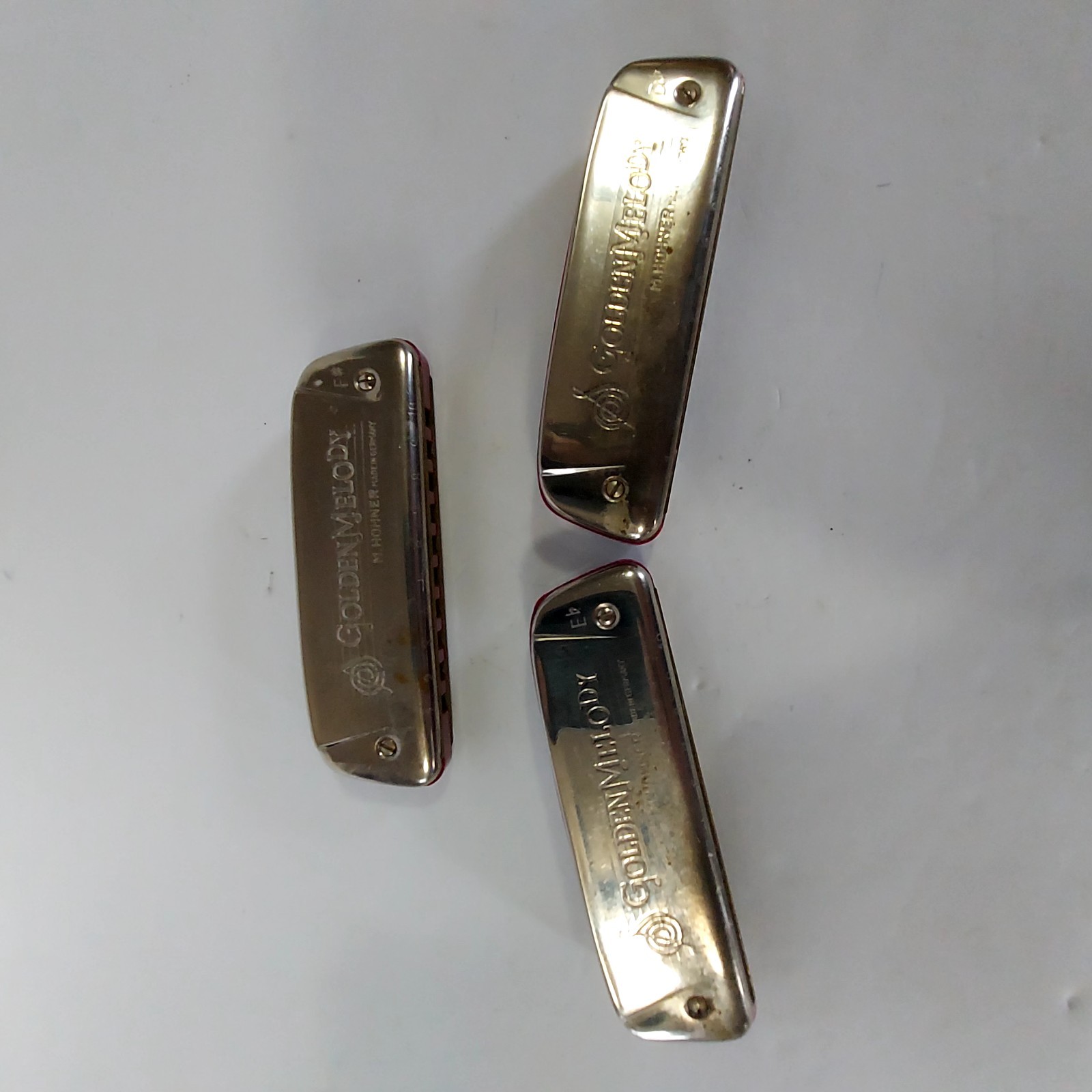 как выглядит Hohner Harmonica Lot Of 3 Db/F /Eb Used Golden Melody фото