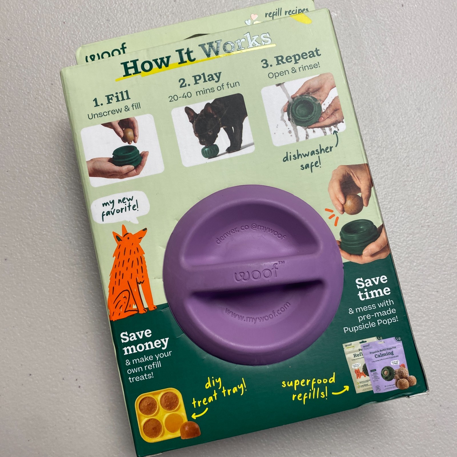Woof Pupsicle Dog Toy Large Lavender Treat Dispensing Ball Reusable 25-75lbs L