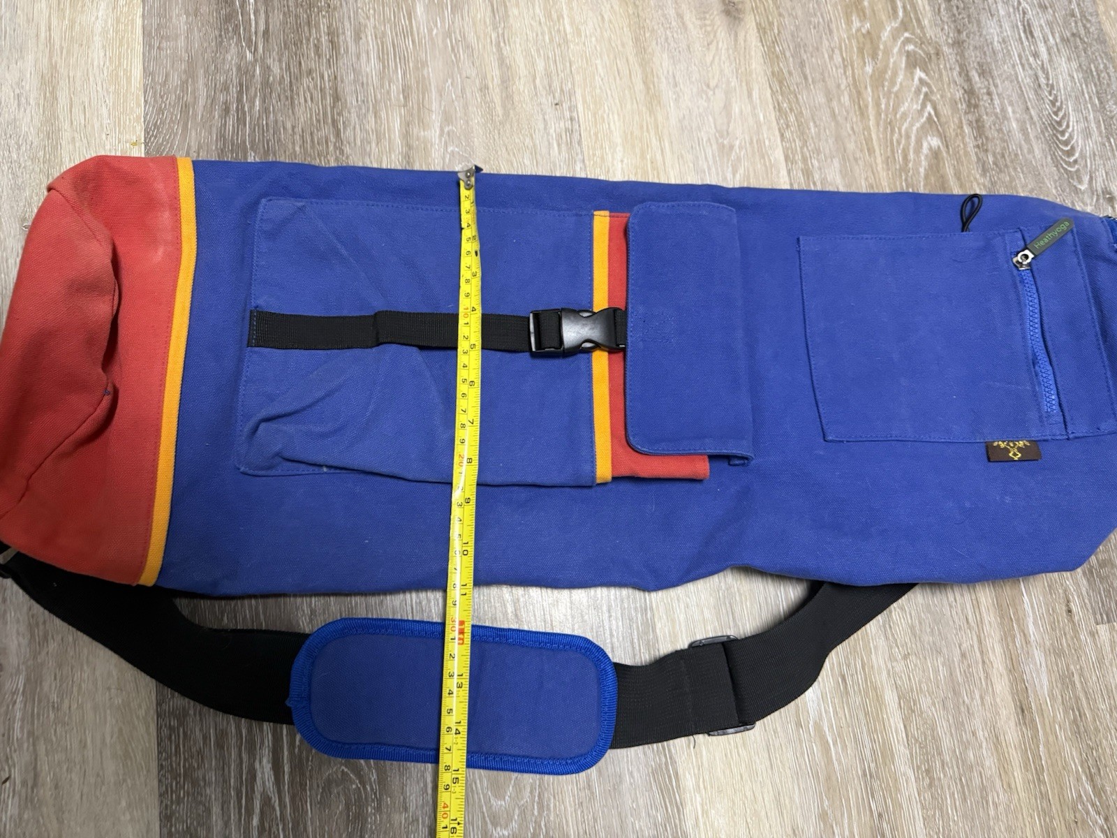 как выглядит VTG Yoga Mat Carrier Bag 90s Color Block Multi Zip Pocket Canvas Shoulder Strap фото