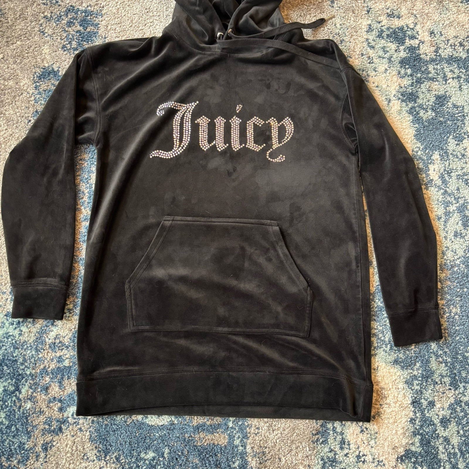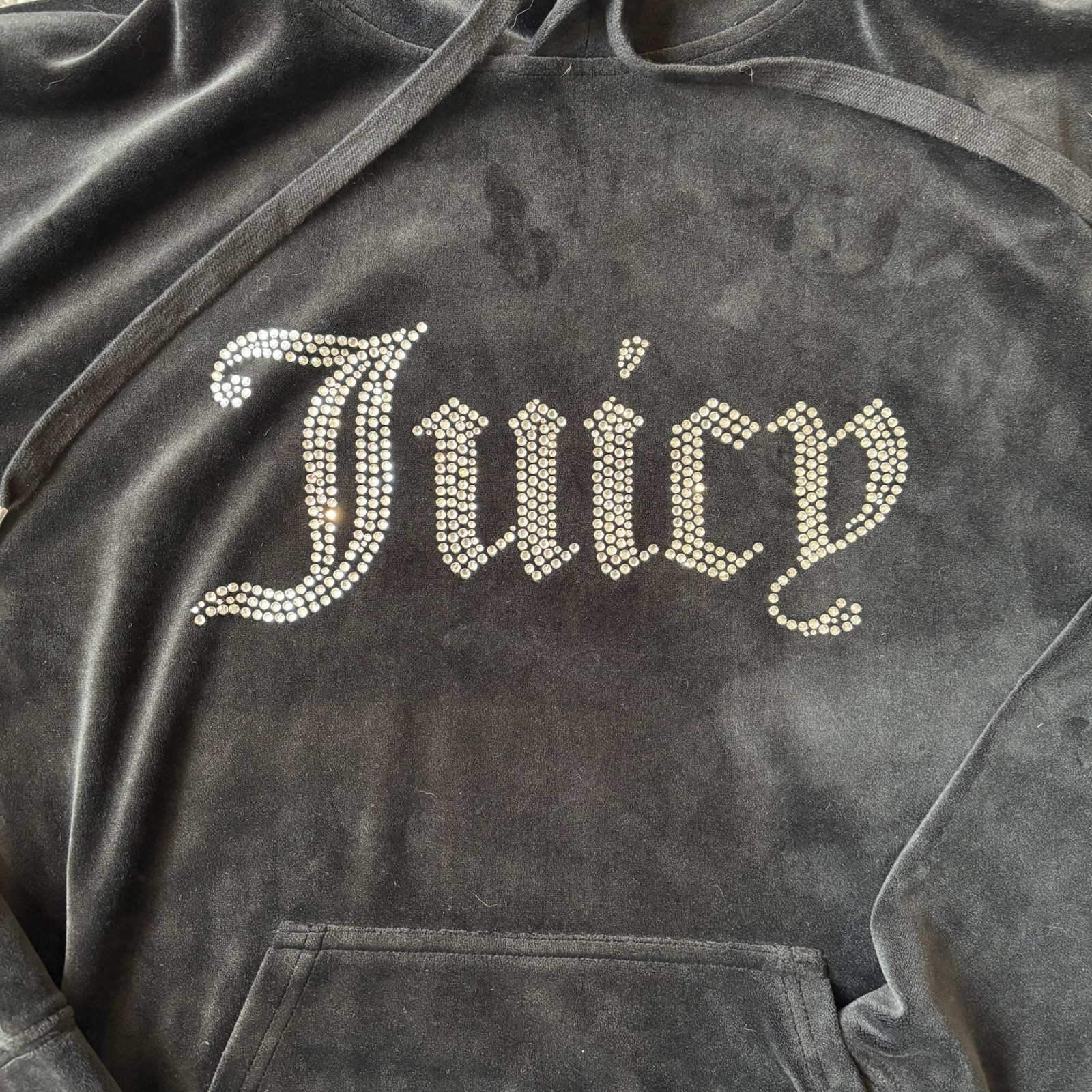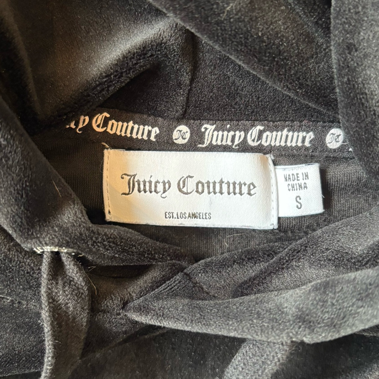 как выглядит Juicy Couture Y2K Velour Hoodie Sweatshirt Womens S Gothic Rhinestones Black фото
